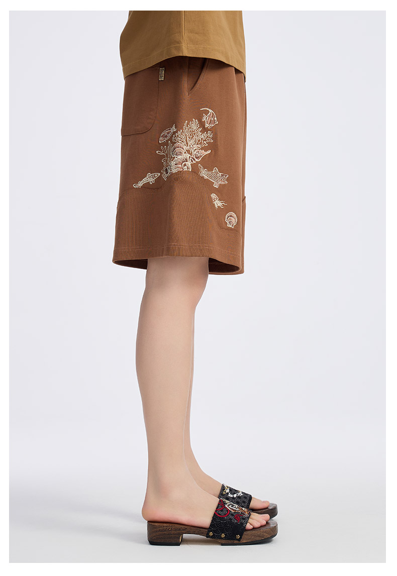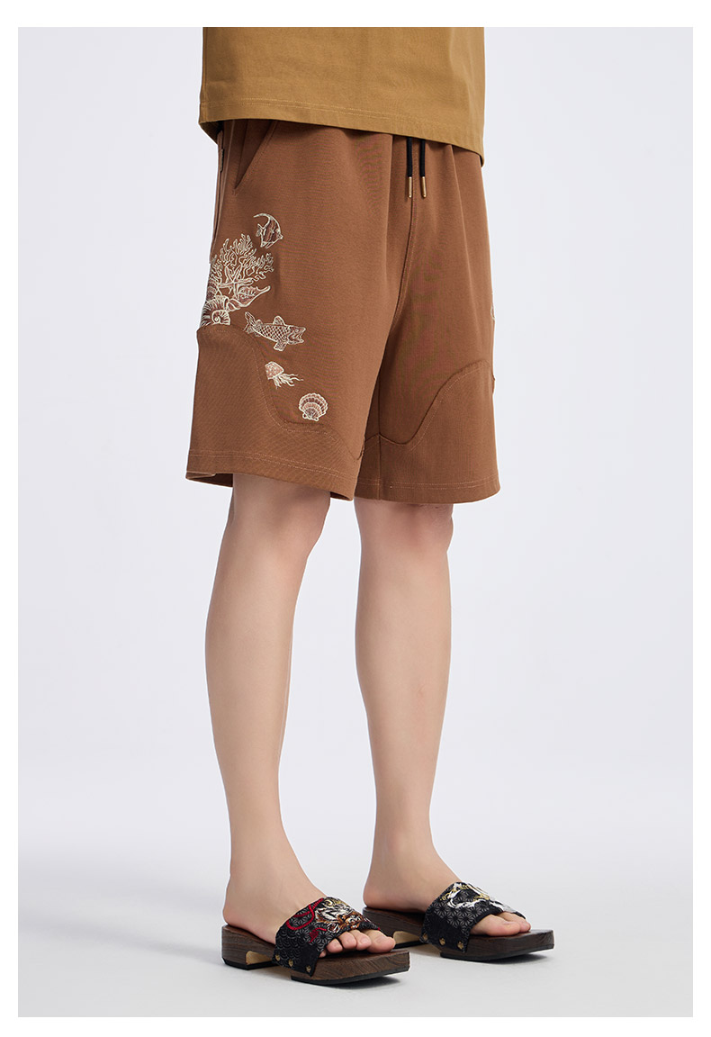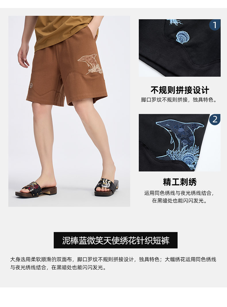 ONIARAI/鬼洗25春夏新品泥棒蓝微笑天使绣花针织短裤男 N540171