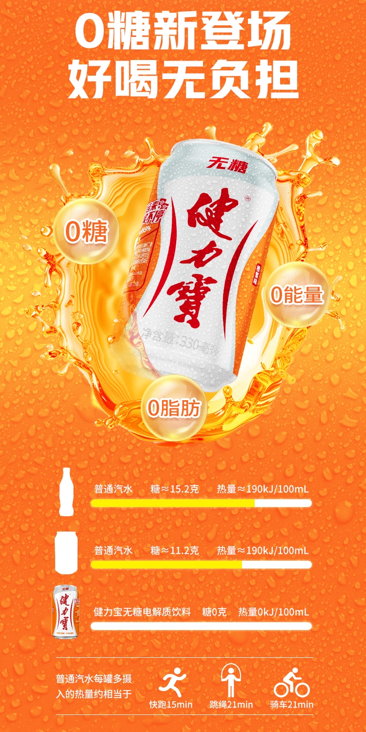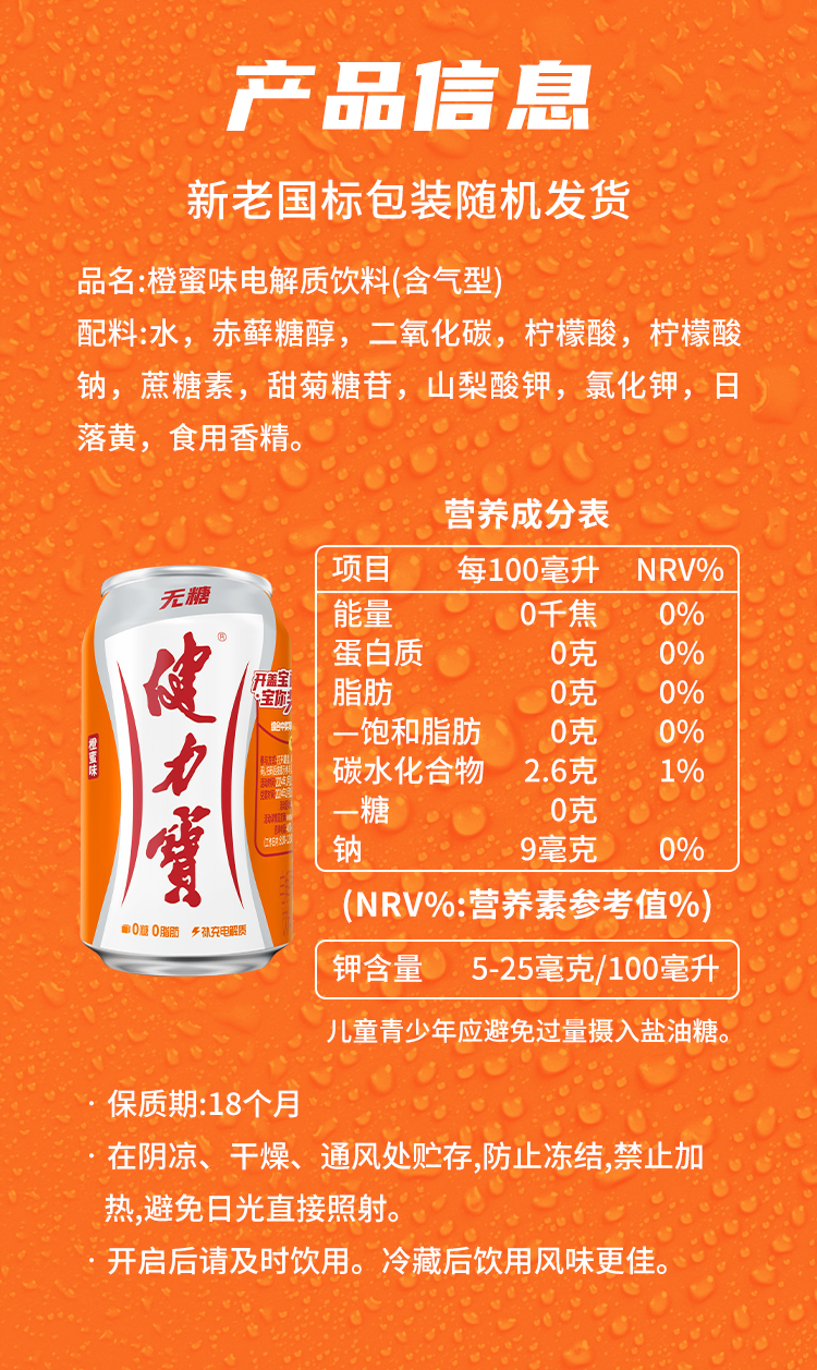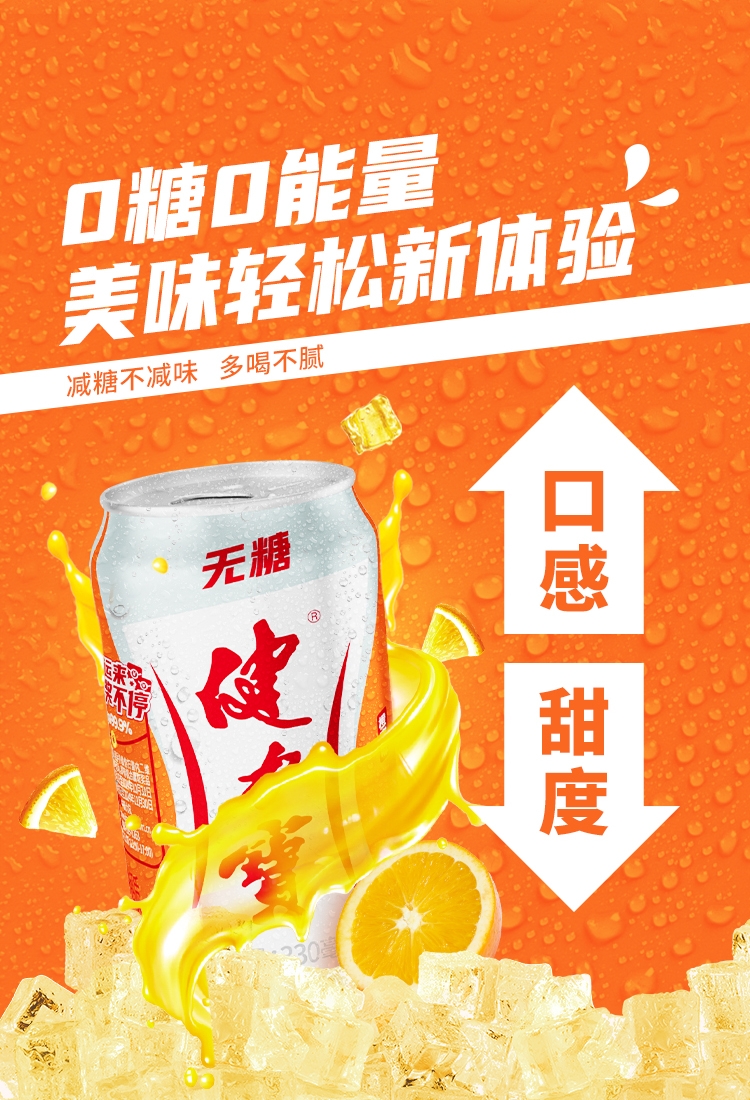 健力宝无糖橙蜜味330ml*24罐碳酸饮料