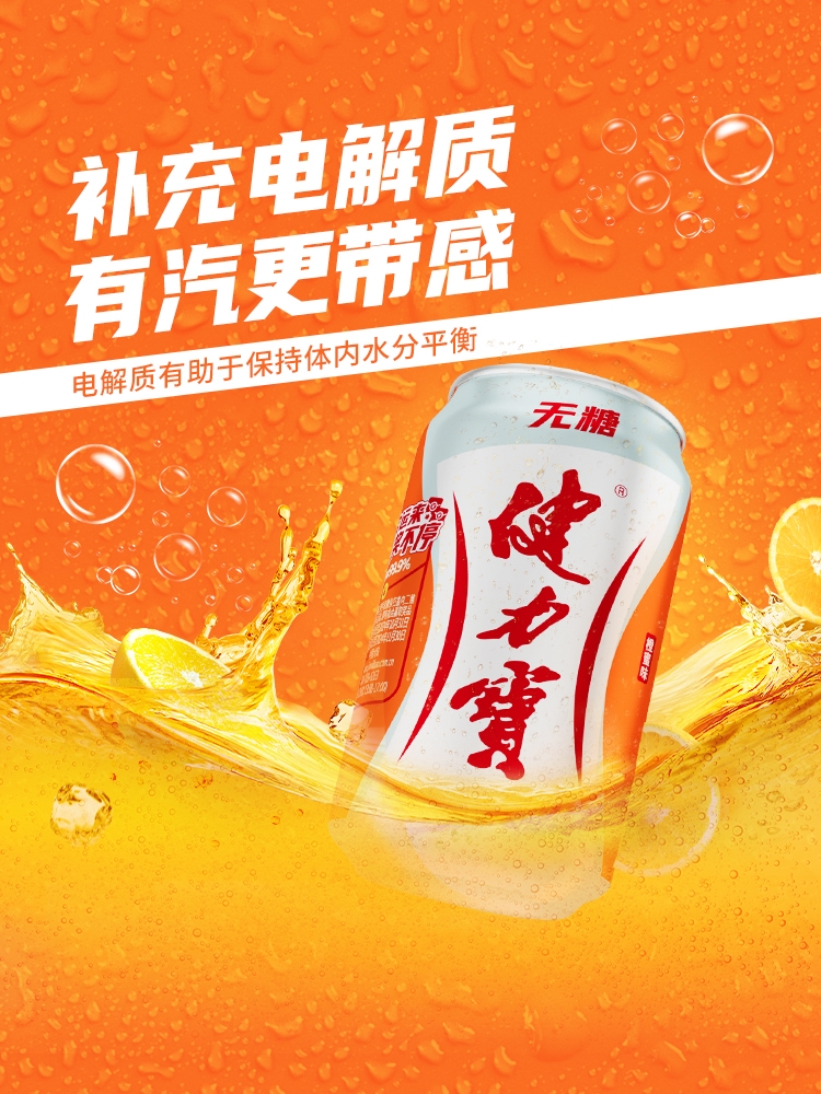 健力宝橙蜜味电解质碳酸运动饮料330ml*24罐整箱