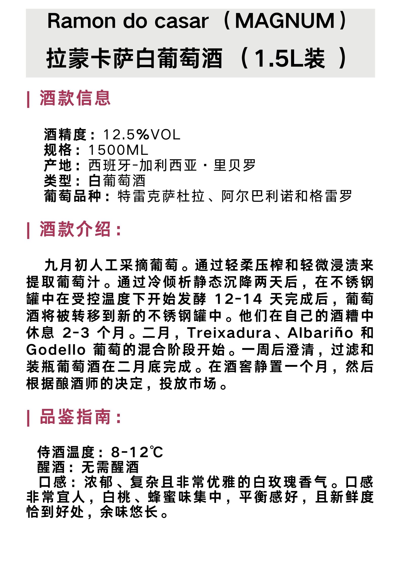 拉蒙卡萨白葡萄酒 (1.5L装 )Ramon do casar (MAGNUM)