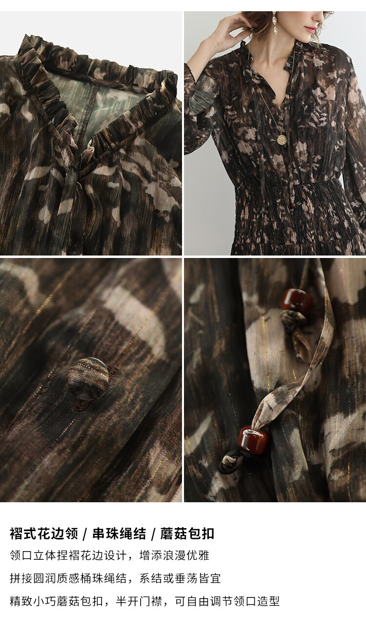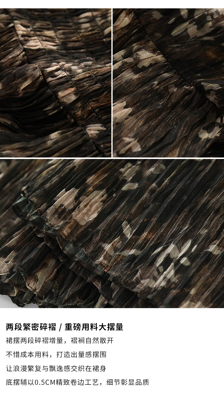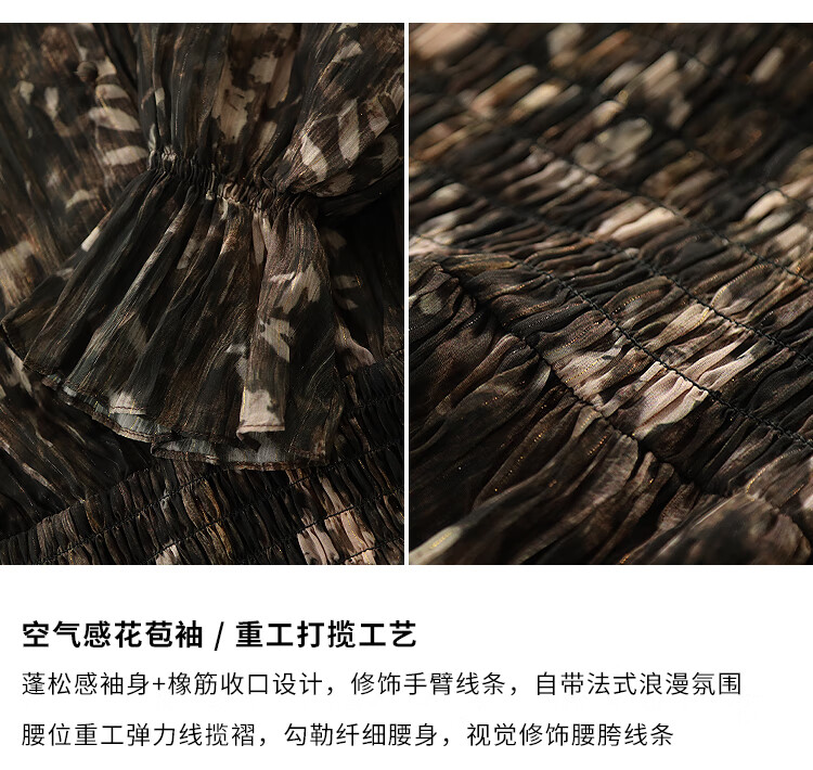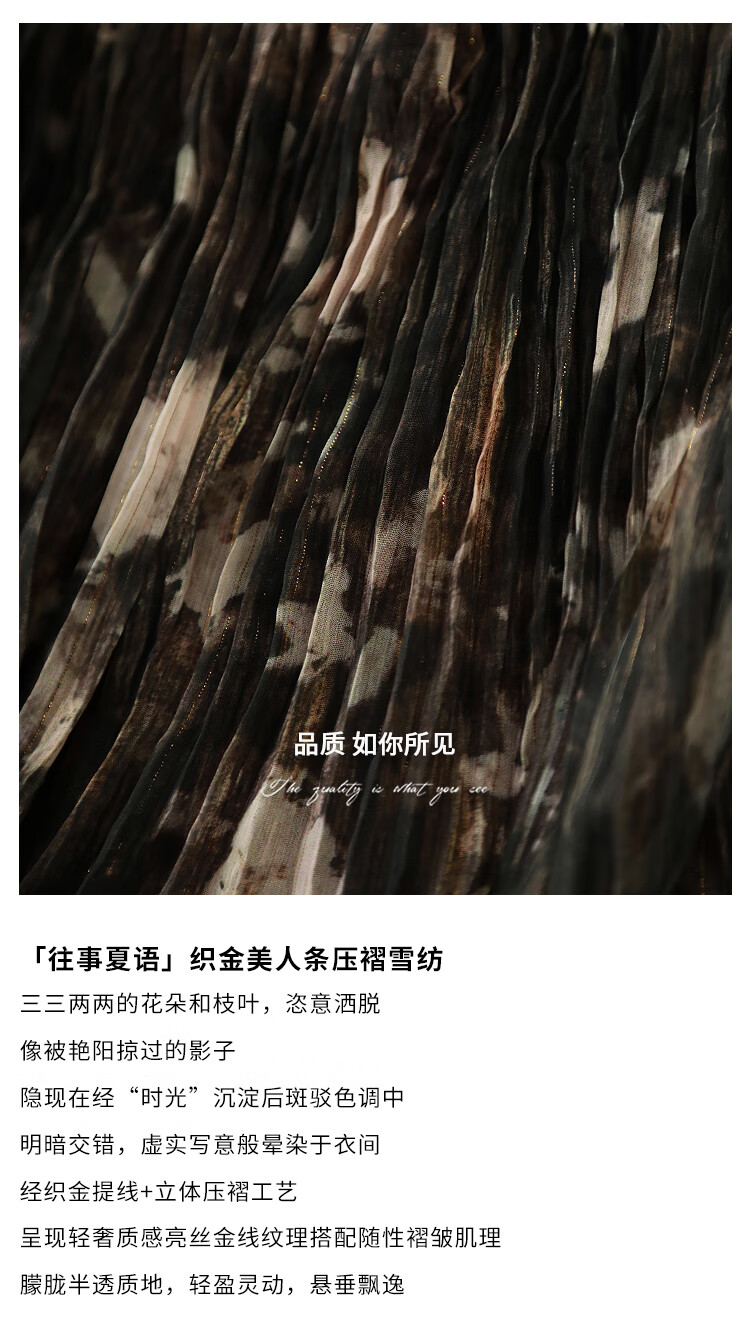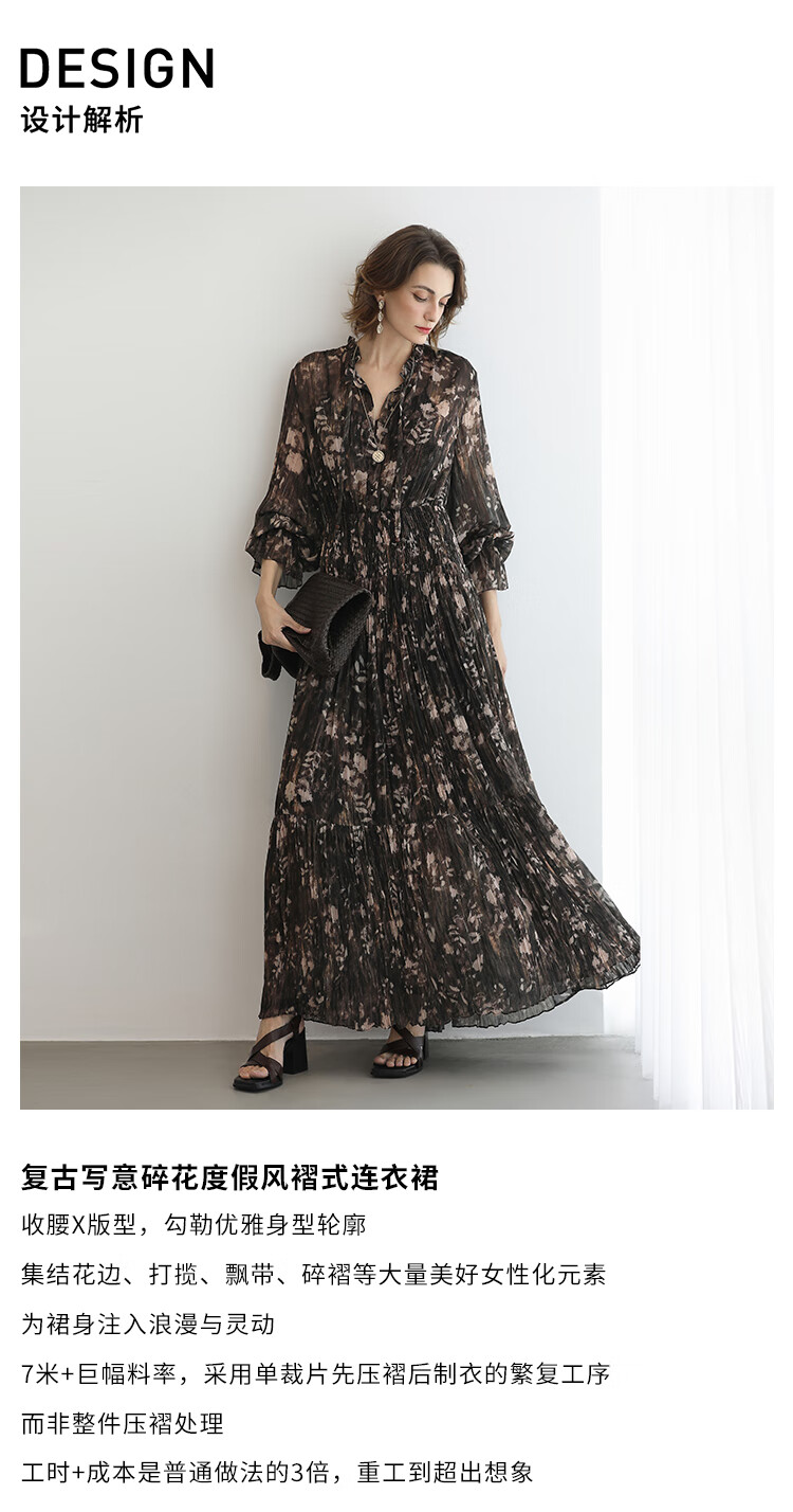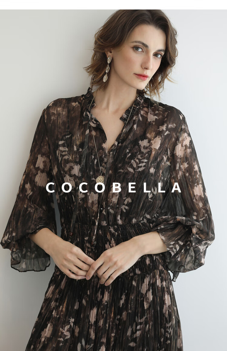 COCOBELLA重工金丝压褶花卉印花连衣裙女夏度假风雪纺长裙FR3075