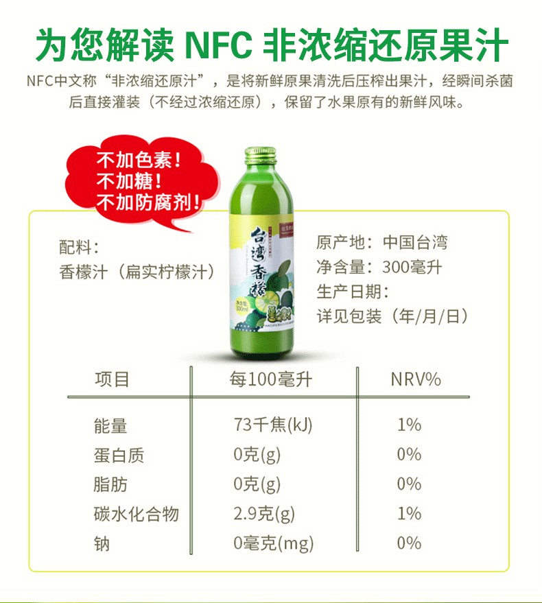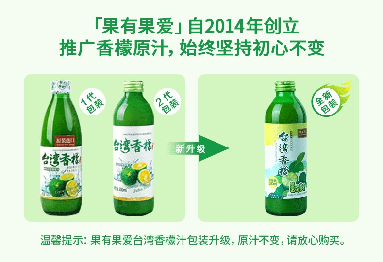 香檬原汁 果有果爱原汁台湾香檬进口非浓缩青柠冲饮原浆【京东快递送货上门】