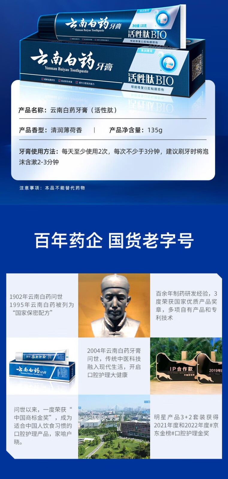 云南白药牙膏 活性肽135g*2支