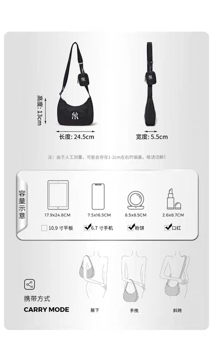 【MLB尼龙子母腋下包】秋冬的街头需要一抹亮眼的情侣印记! 潮流单品要兼顾颜值与实用性 标志性大LOGO,男女同款-XMCH