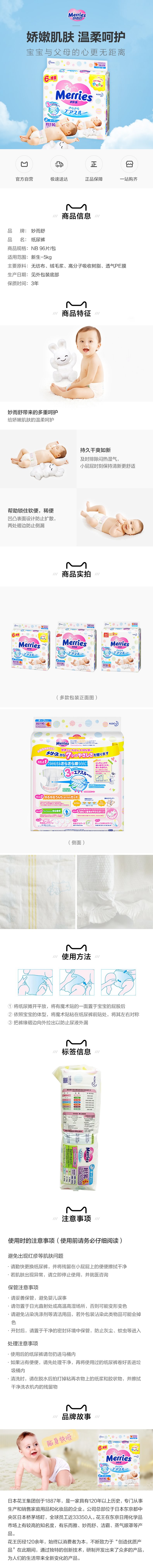 KAO花王 MERRIES妙而舒 纸尿裤尿不湿 NB90片+6片/包 日本