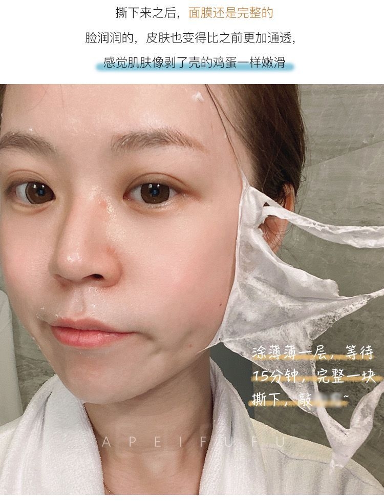酸奶的质地,味道也超级好闻,高雅的植物香氛,因为含有积雪草,金盏花天然植物提取,成分还是比较温和的,孕妇敏感肌也是适用的,因为它有第二肌肤黑科技,帮助细腻紧致我们的肌肤,就像剥了壳的鸡蛋撕拉时真的是无痛感,非常好撕下来,体验感非常好,以后会回购!