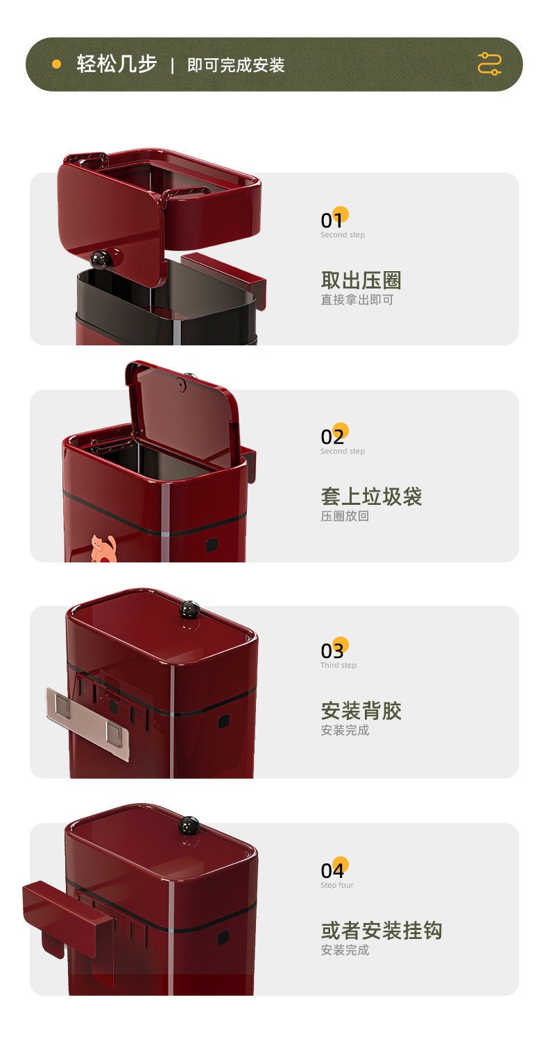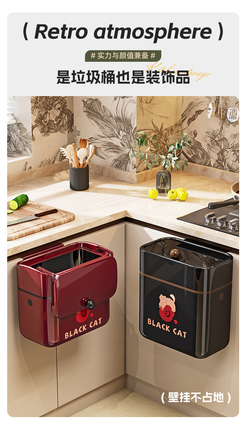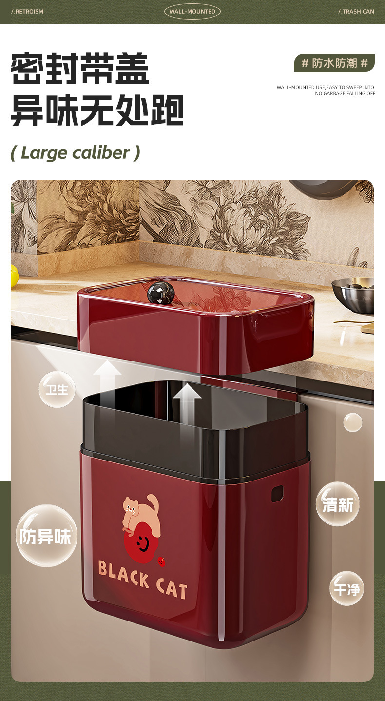 【复古!挂壁式垃圾桶】壁挂卫生间垃圾桶 纸篓免安装 厨房专用带盖挂 墙家用塑料垃圾收纳桶