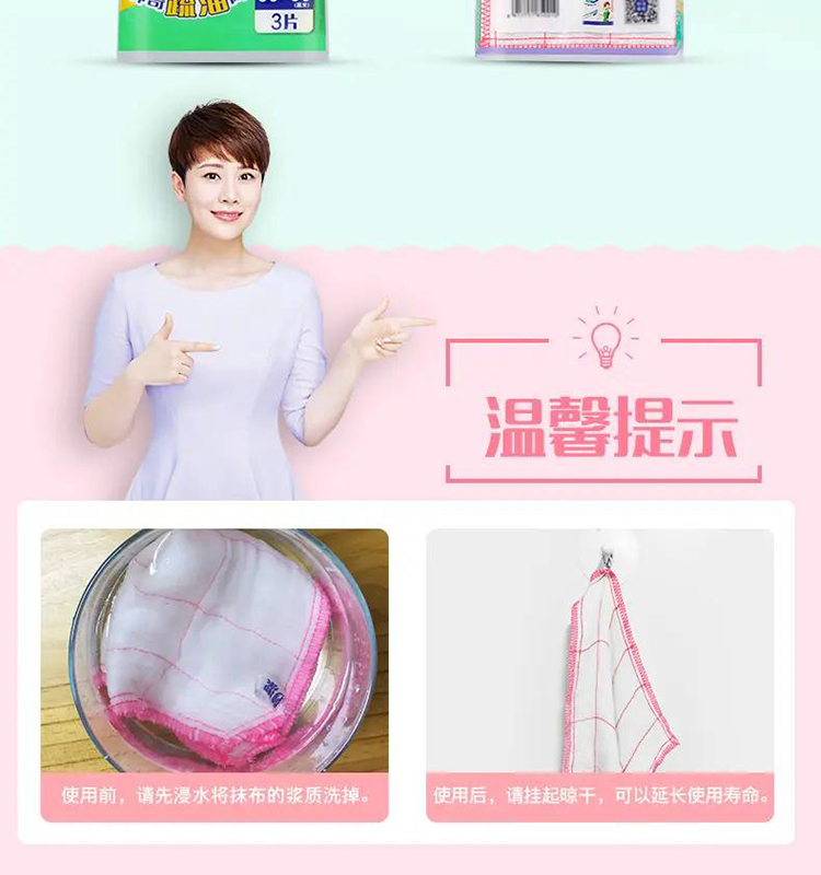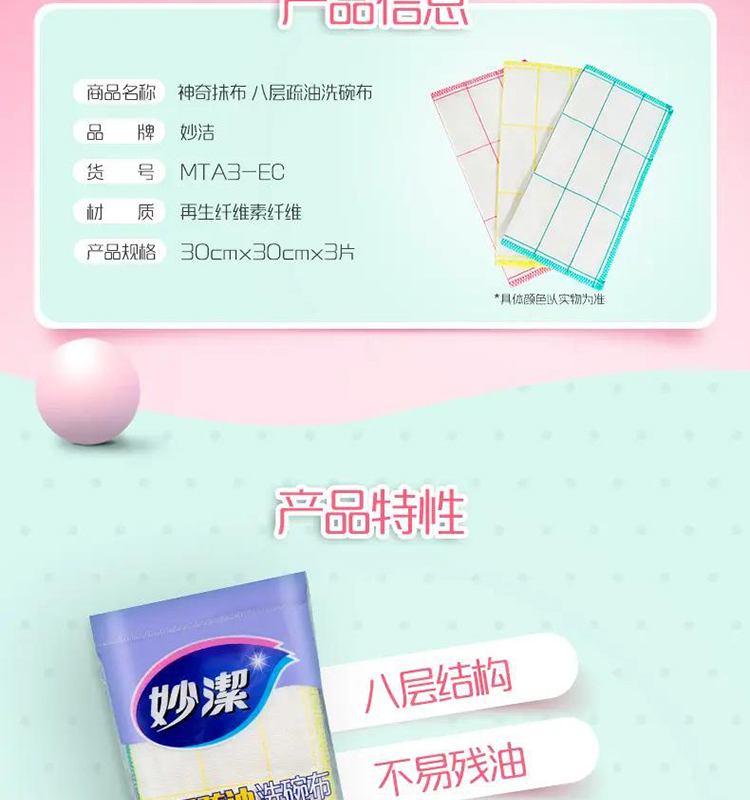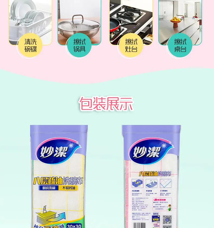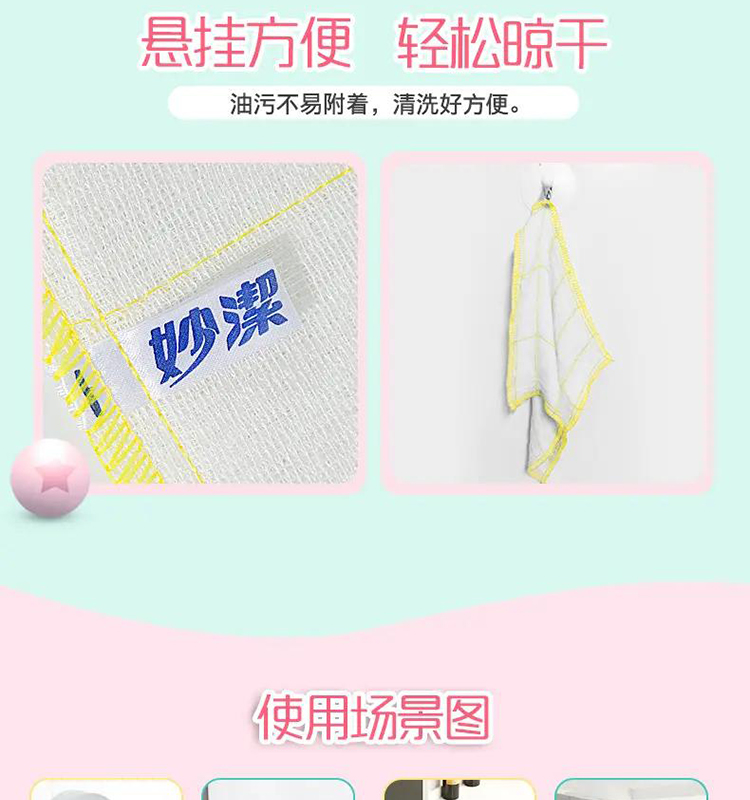 【自营】 妙洁 家用厨房棉柔清洁抹布 洗碗巾吸水抹布 3片装/9片装