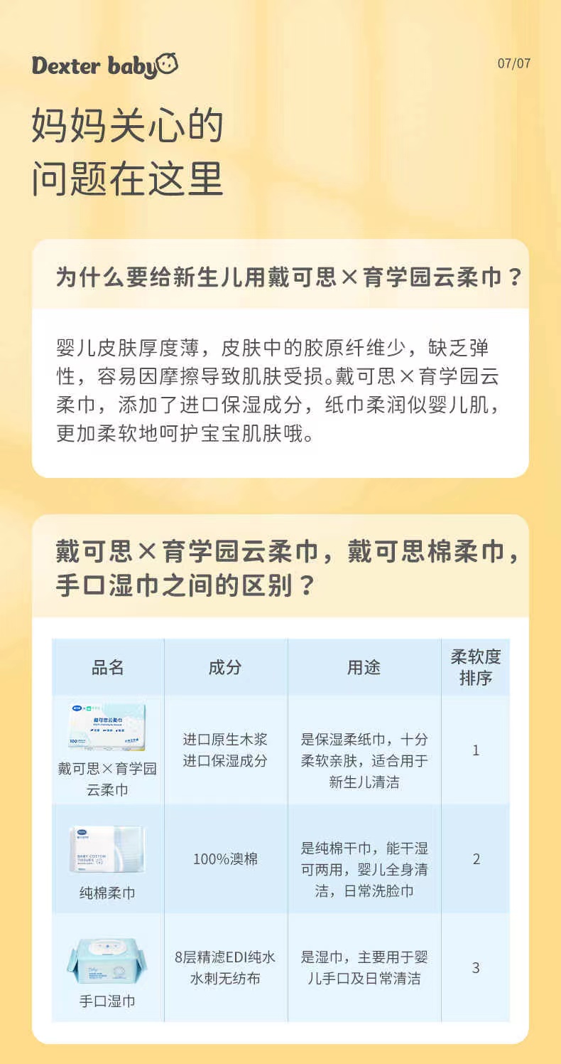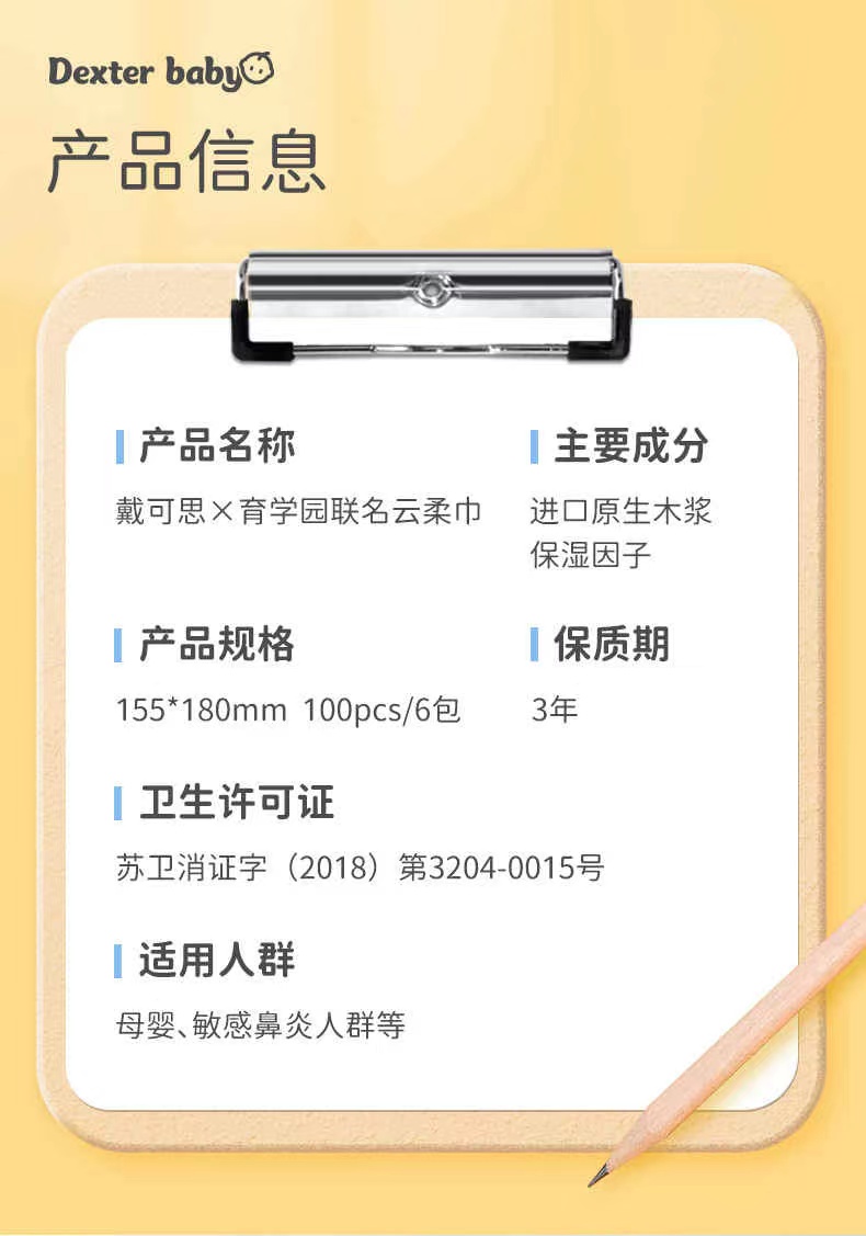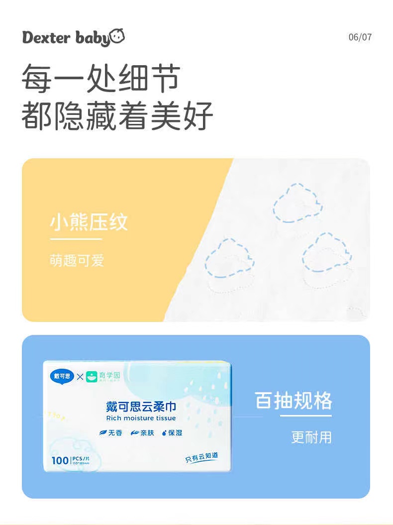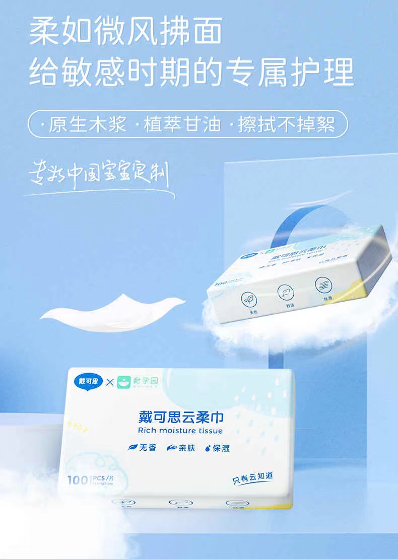【戴可思推荐】 鼻子纸/云柔巾 戴可思婴儿云柔巾100抽*6包