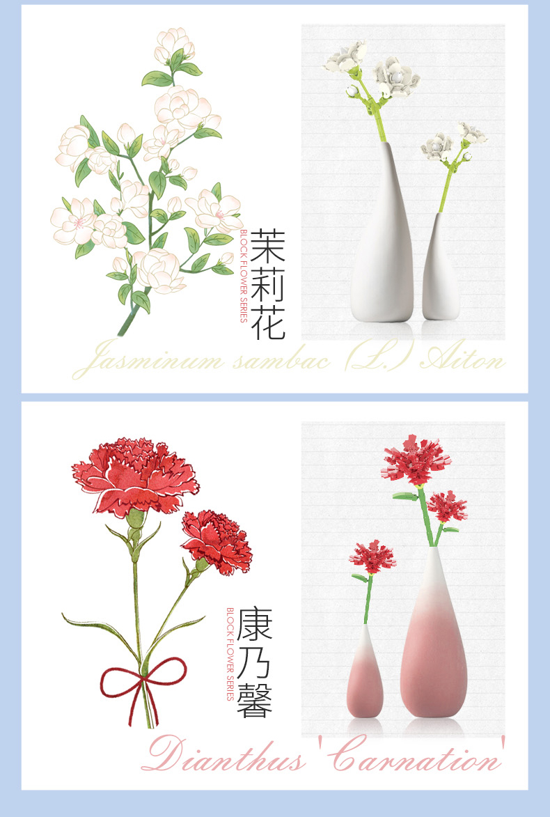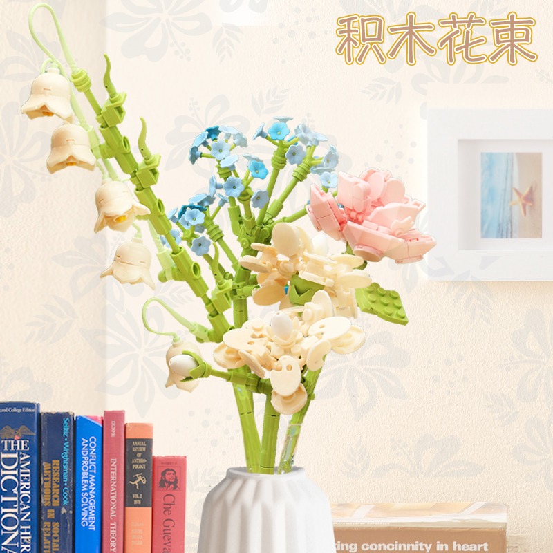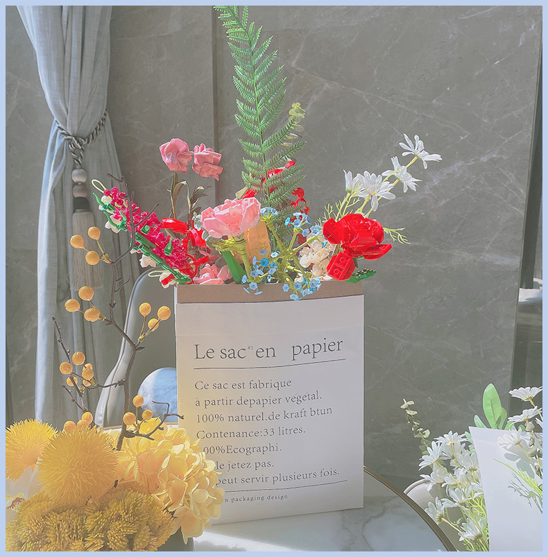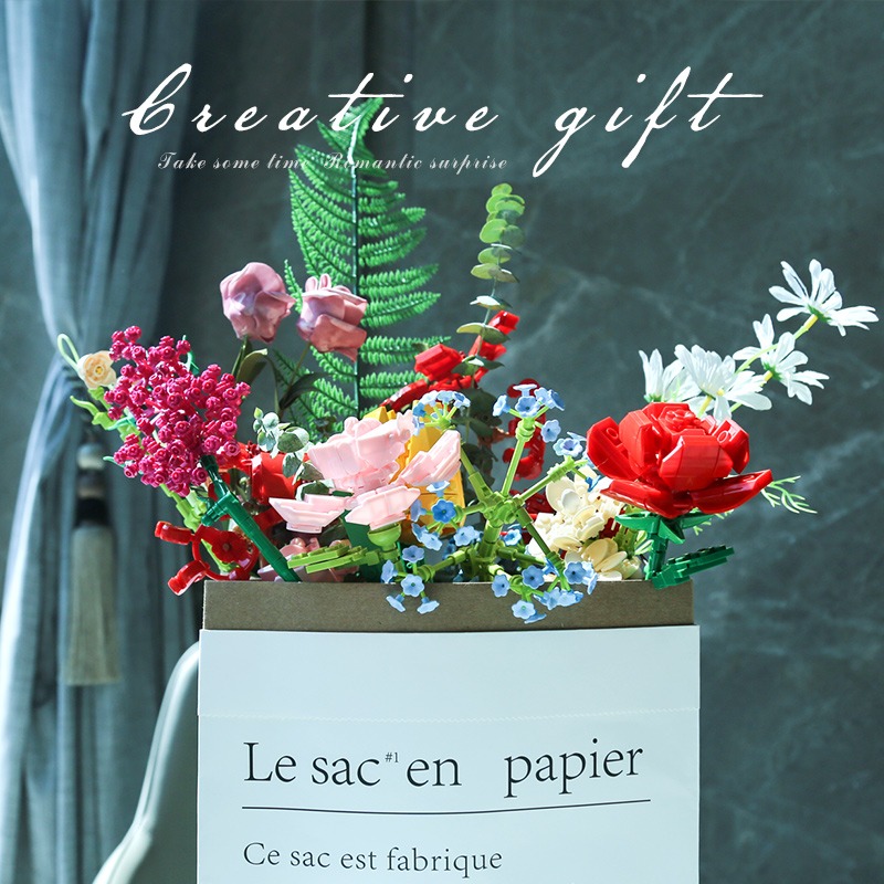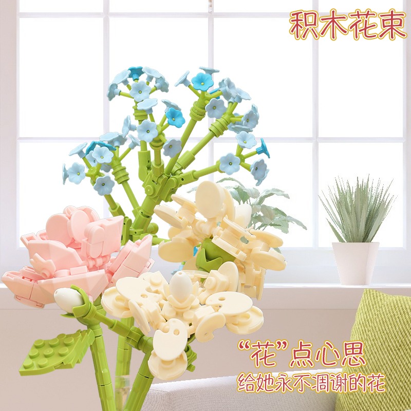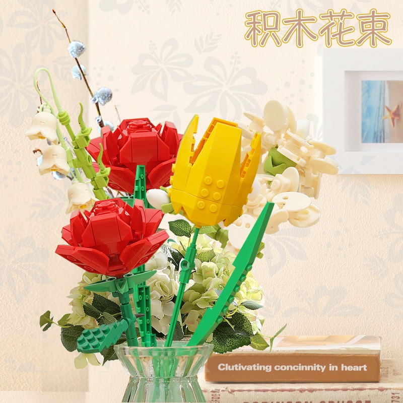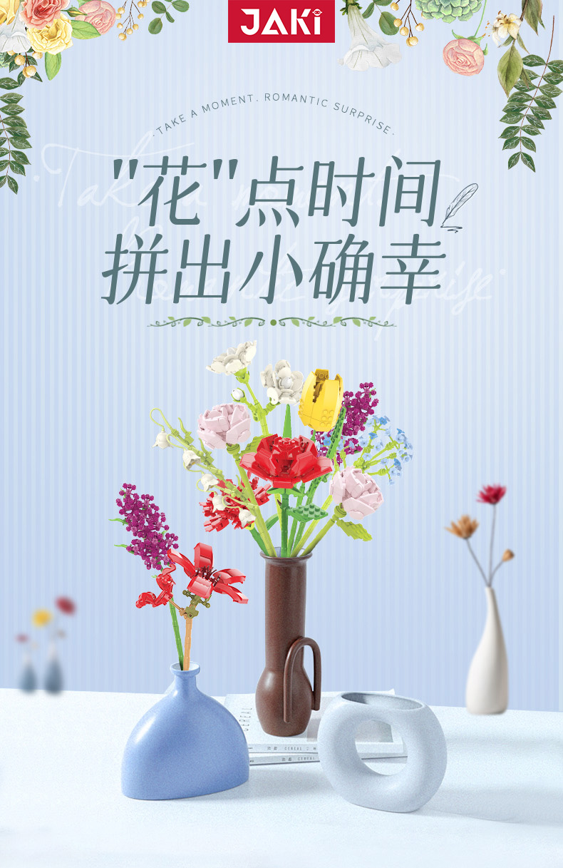 JAKI佳奇积木花束拼装玩具永生花向日葵玫瑰桌面摆件
