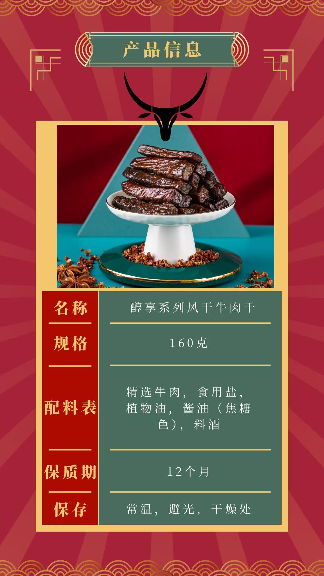 【自营】游牧印象醇享系列炭烤风干牛肉干 160g/袋NM