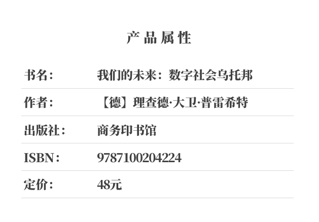 本书描绘了一幅充满希望的数字化时代的未来图景,同时客观冷静分析了以牺牲反思判断力为代价的、充满刺激和欲望扩张的数字化发展过程对文化、道德和政治能力的威胁,批判了德国政府反应的冷漠滞后,并探讨了创造充满希望的数字化时代的可能性措施。