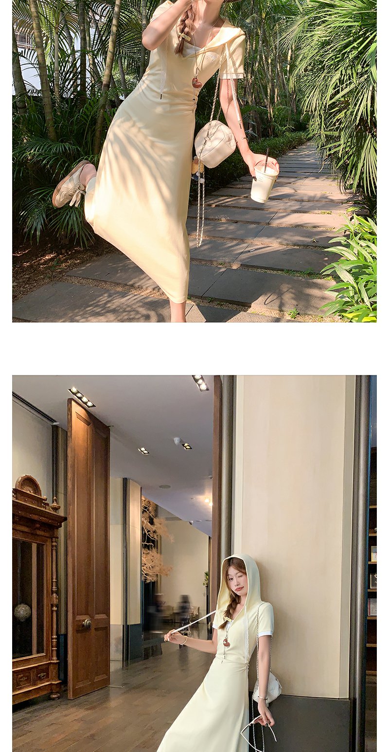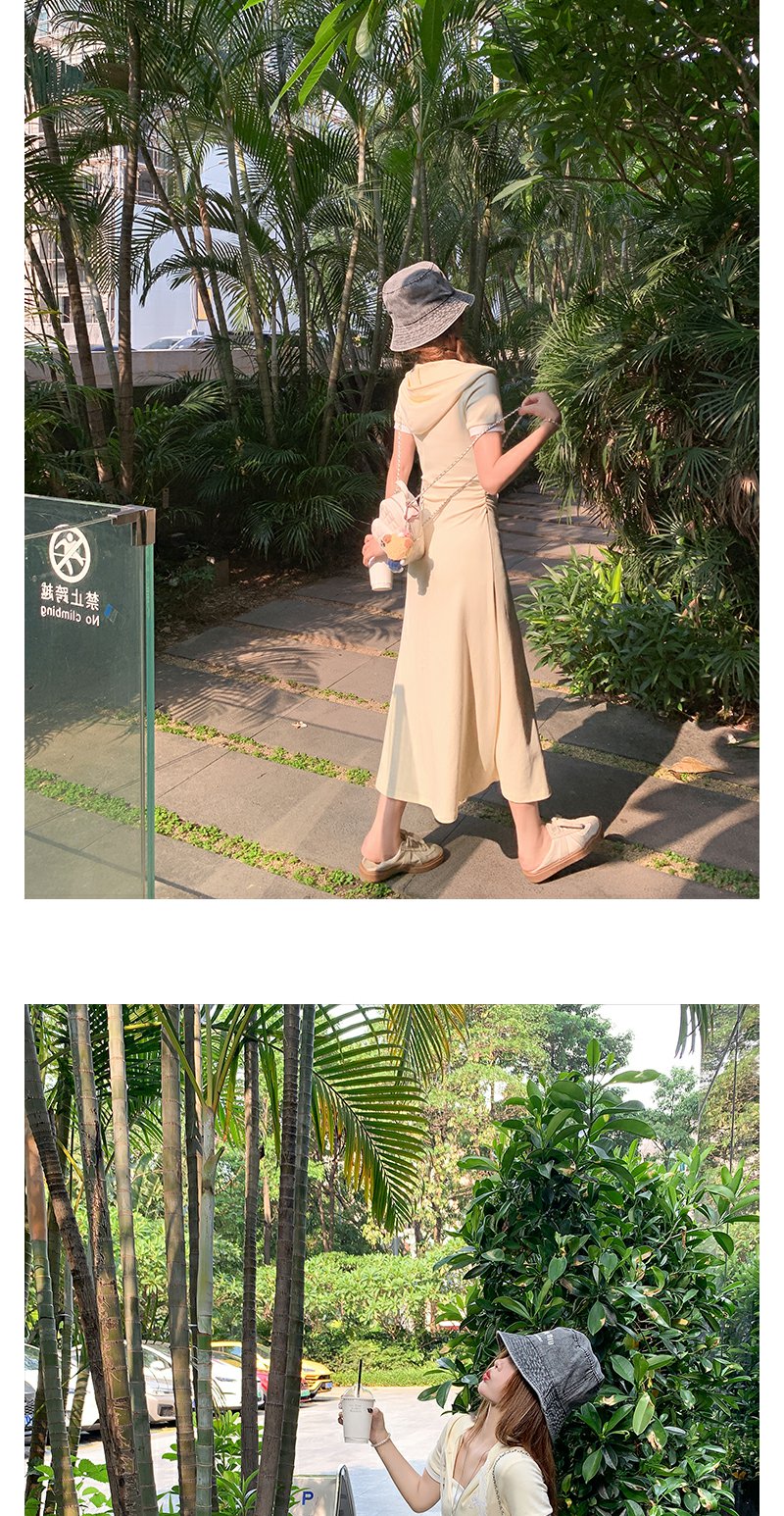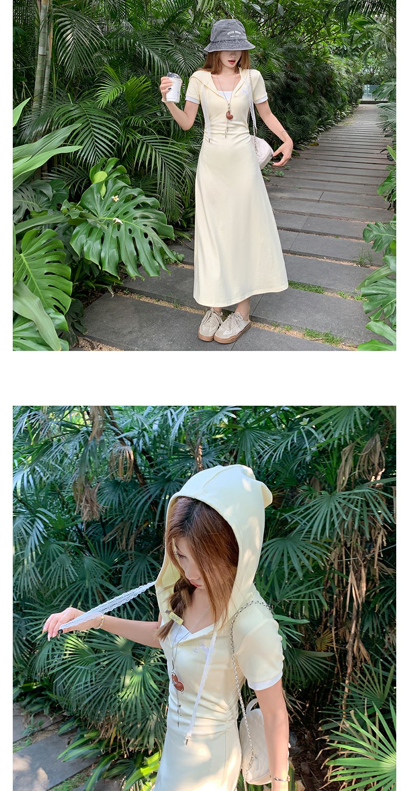 <曾小咸推荐>韩系连帽修身显瘦V领连衣裙长裙