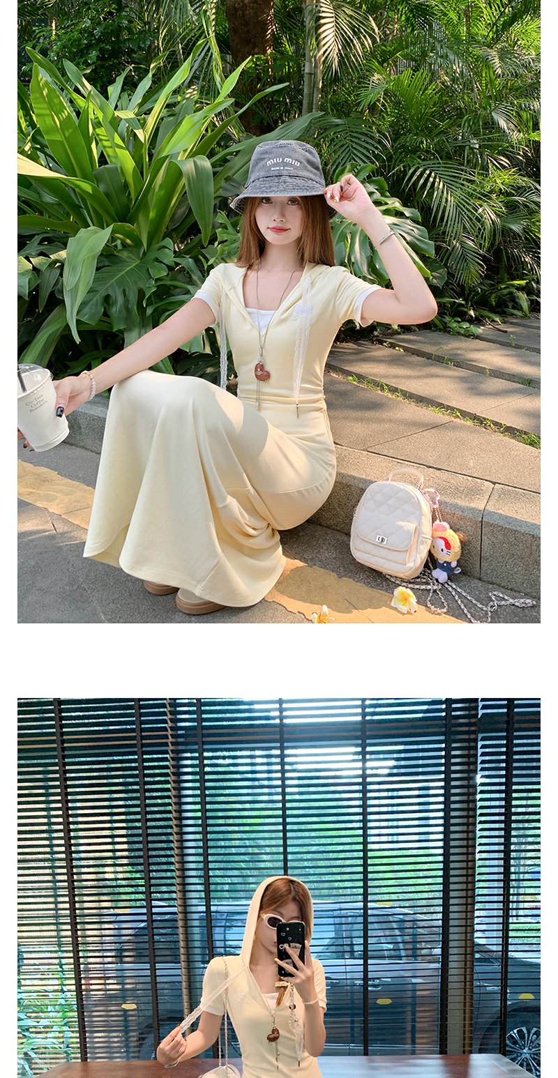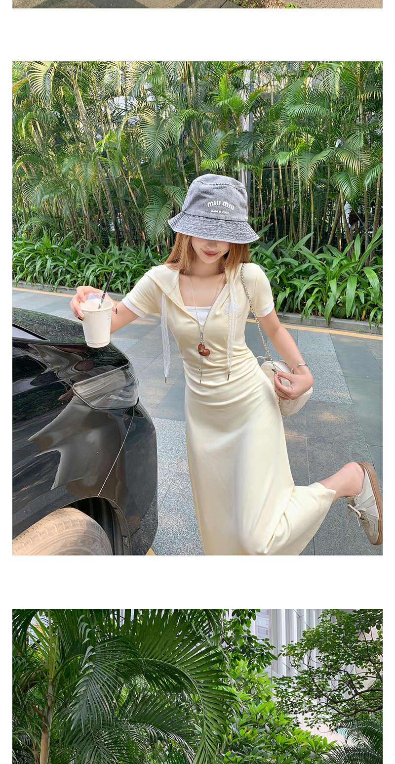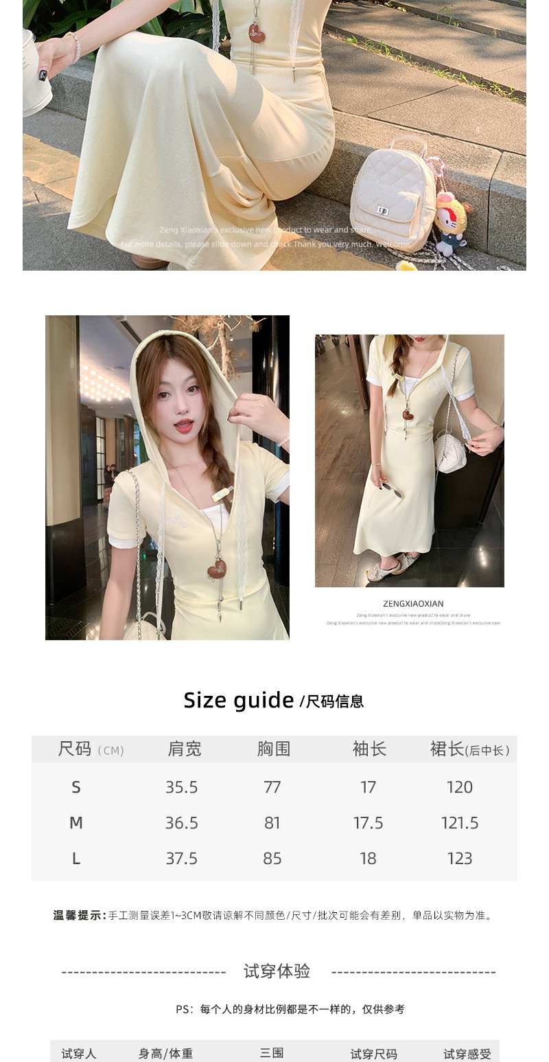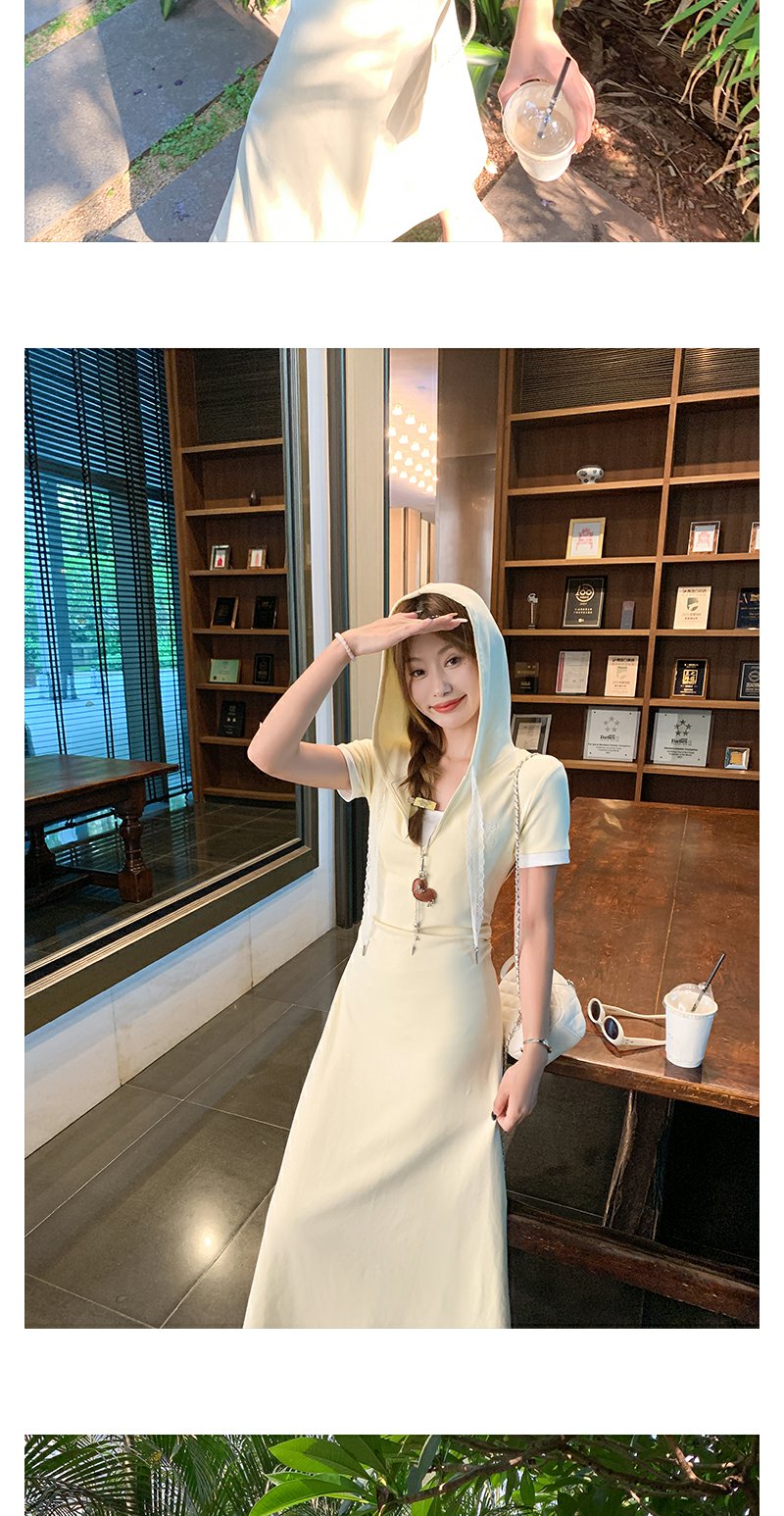 <曾小咸推荐>韩系连帽修身显瘦V领连衣裙长裙