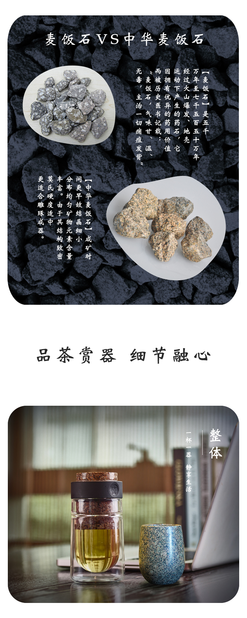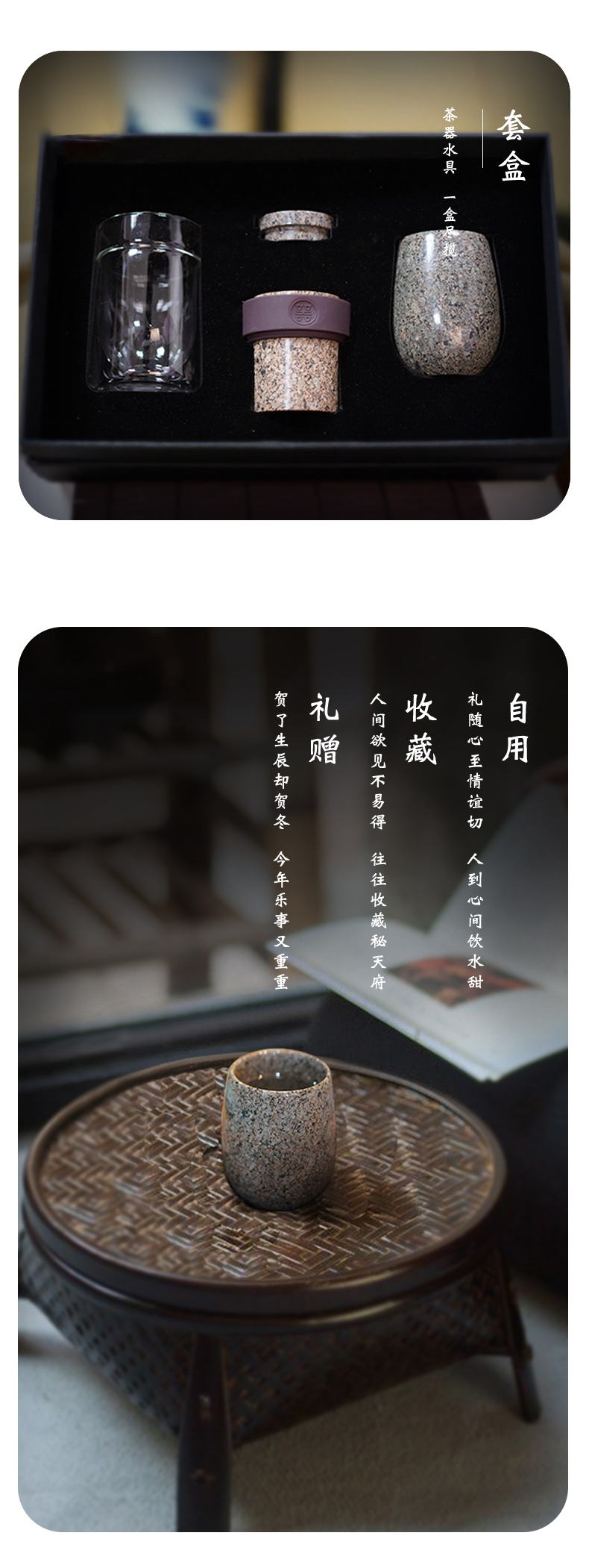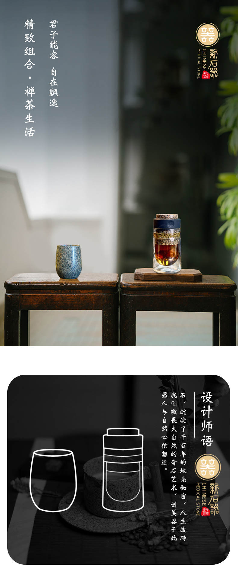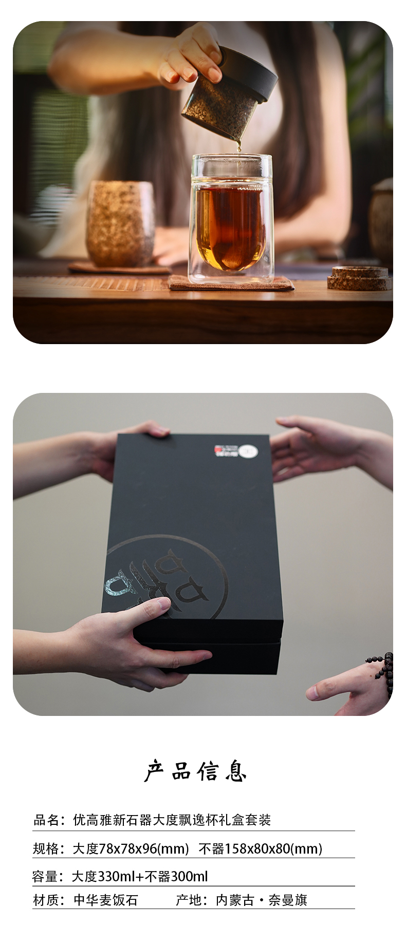 内蒙古麦饭石不器飘逸杯+大度口杯礼品套装(含精装礼盒)
