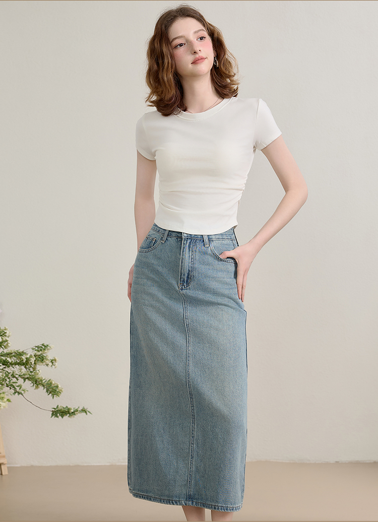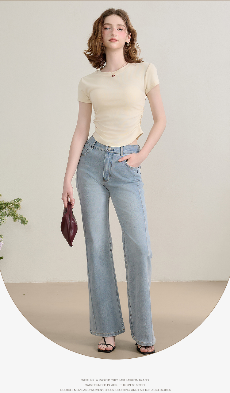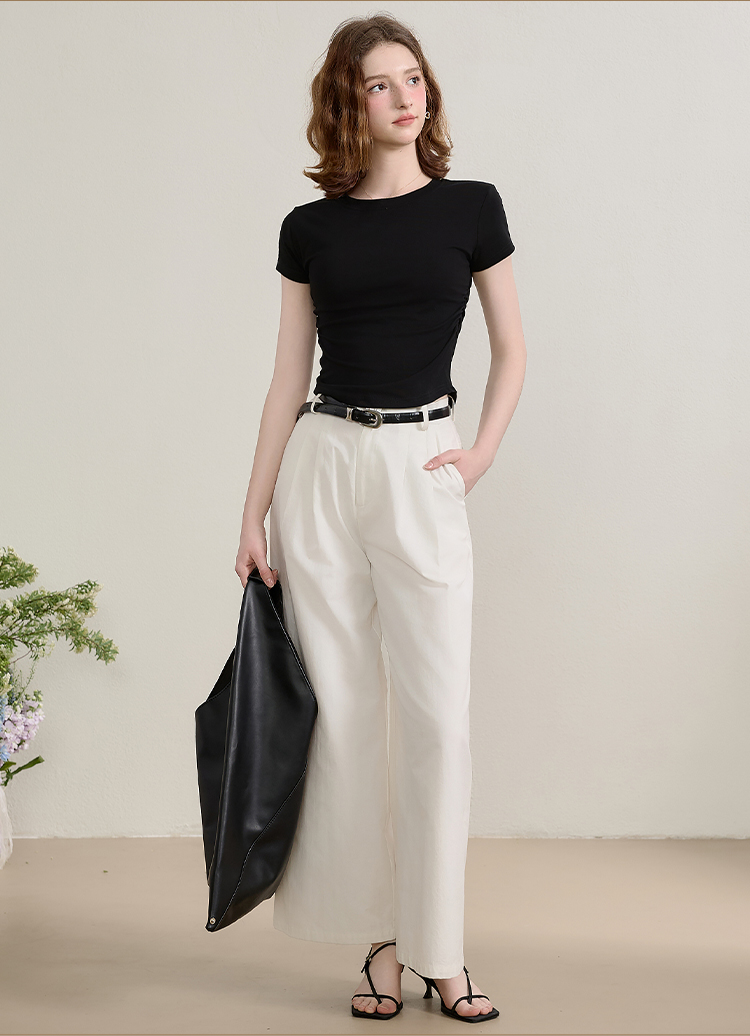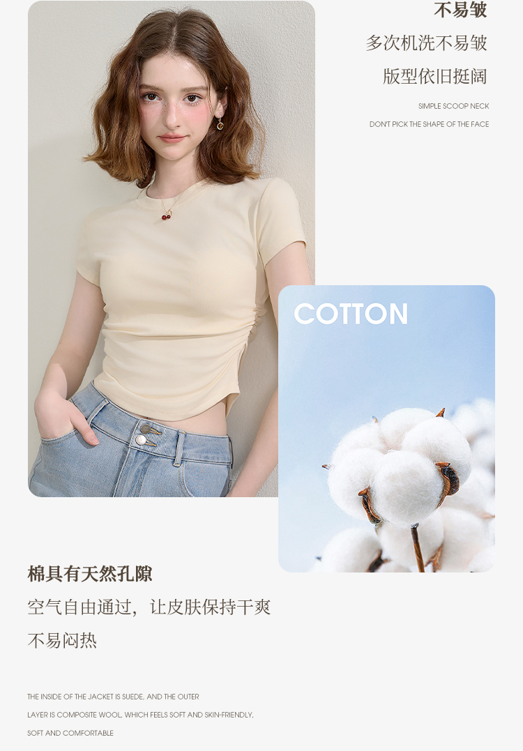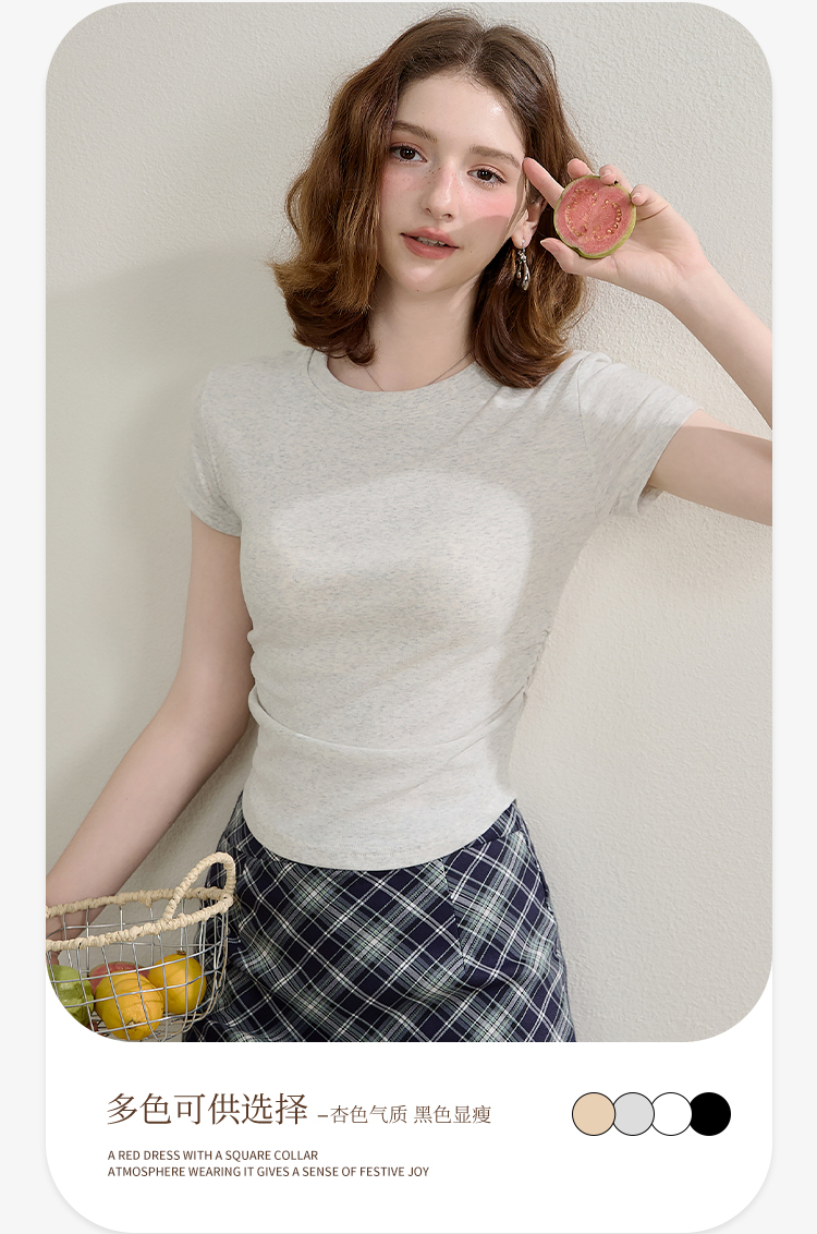 西遇圆领短袖t恤女新款休闲纯色修身内搭正肩短款上衣SS150224