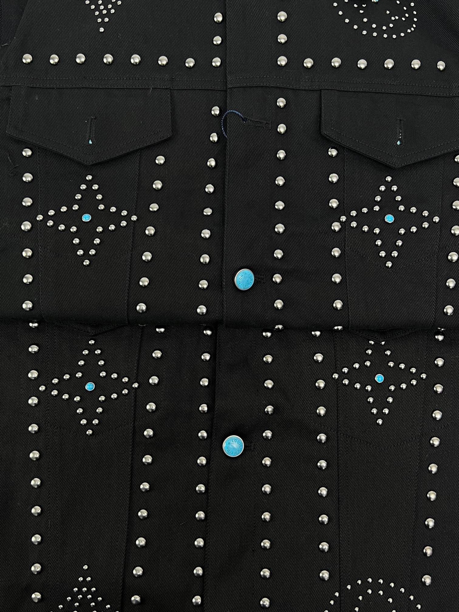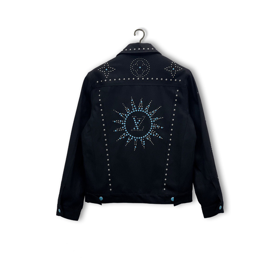 原版购入顶级1:1开发 本款牛仔夹克援引2024秋冬秀场的西部丹迪主题,以金属饰钉烘托 Monogram 花卉的瞩目绽放。背部融合LV标识和骄阳图案,纽扣与饰钉点亮工致细节,可为休闲造型注入雅致意韵。