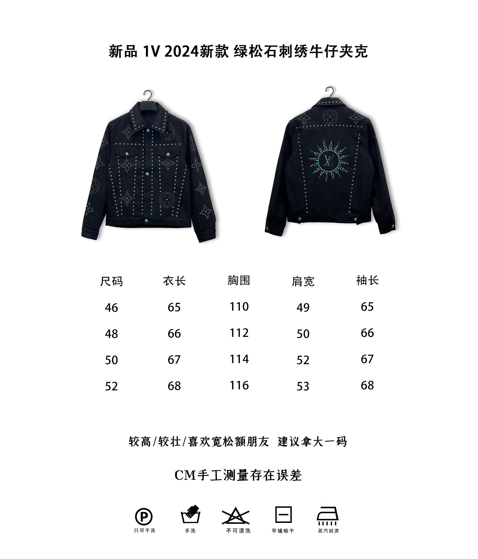 新品 1V 2024新款 绿松石刺绣牛仔夹克