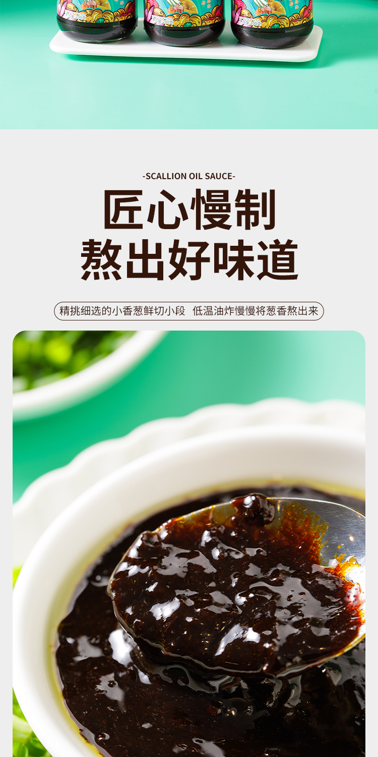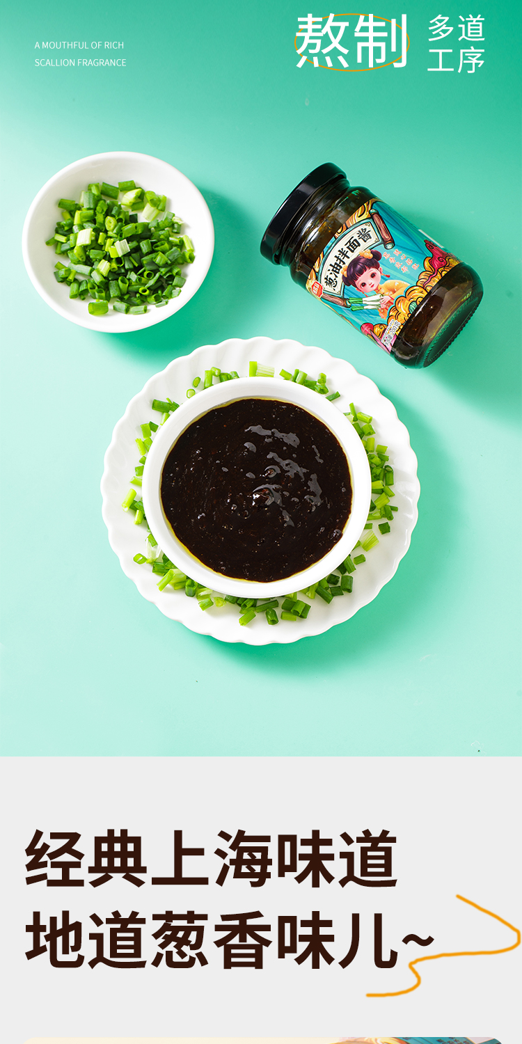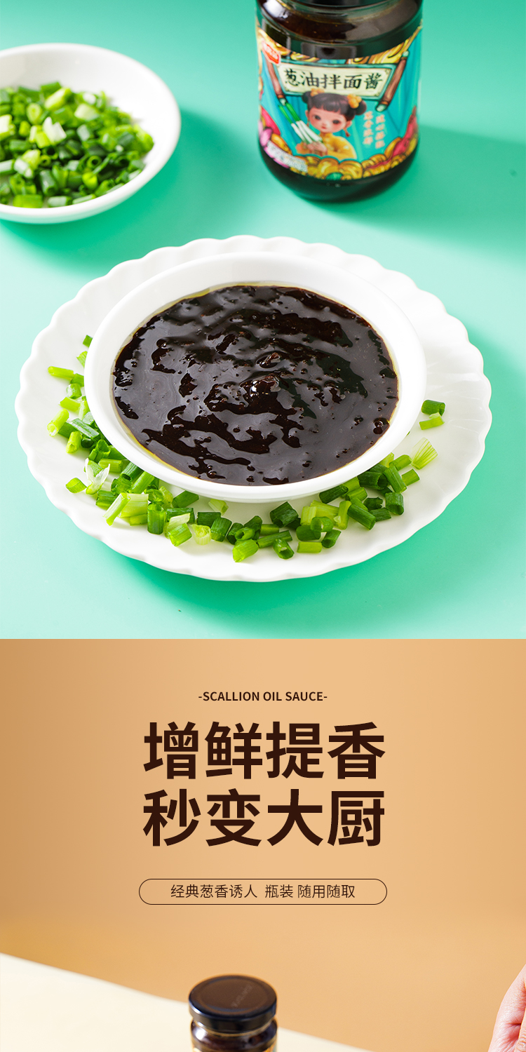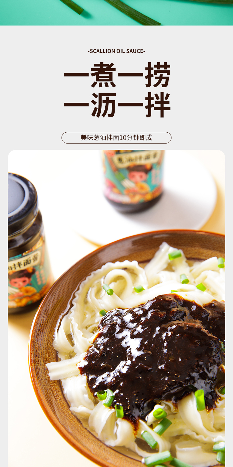 葱油拌面酱配料表:小葱、酿造酱油(含焦糖色)、植物油(含TBHQ)、洋葱、耗油、白砂糖、食用盐、沥干物≥20%。