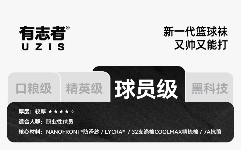 有志者UZIS篮球袜男全掌缓震防滑专业实战训练美式运动长筒袜全胜