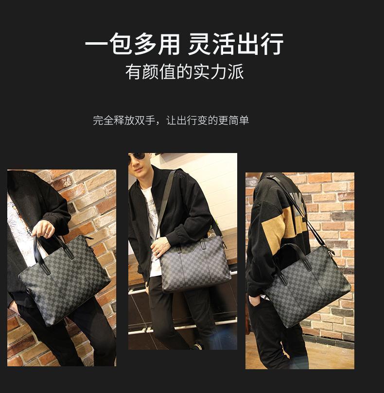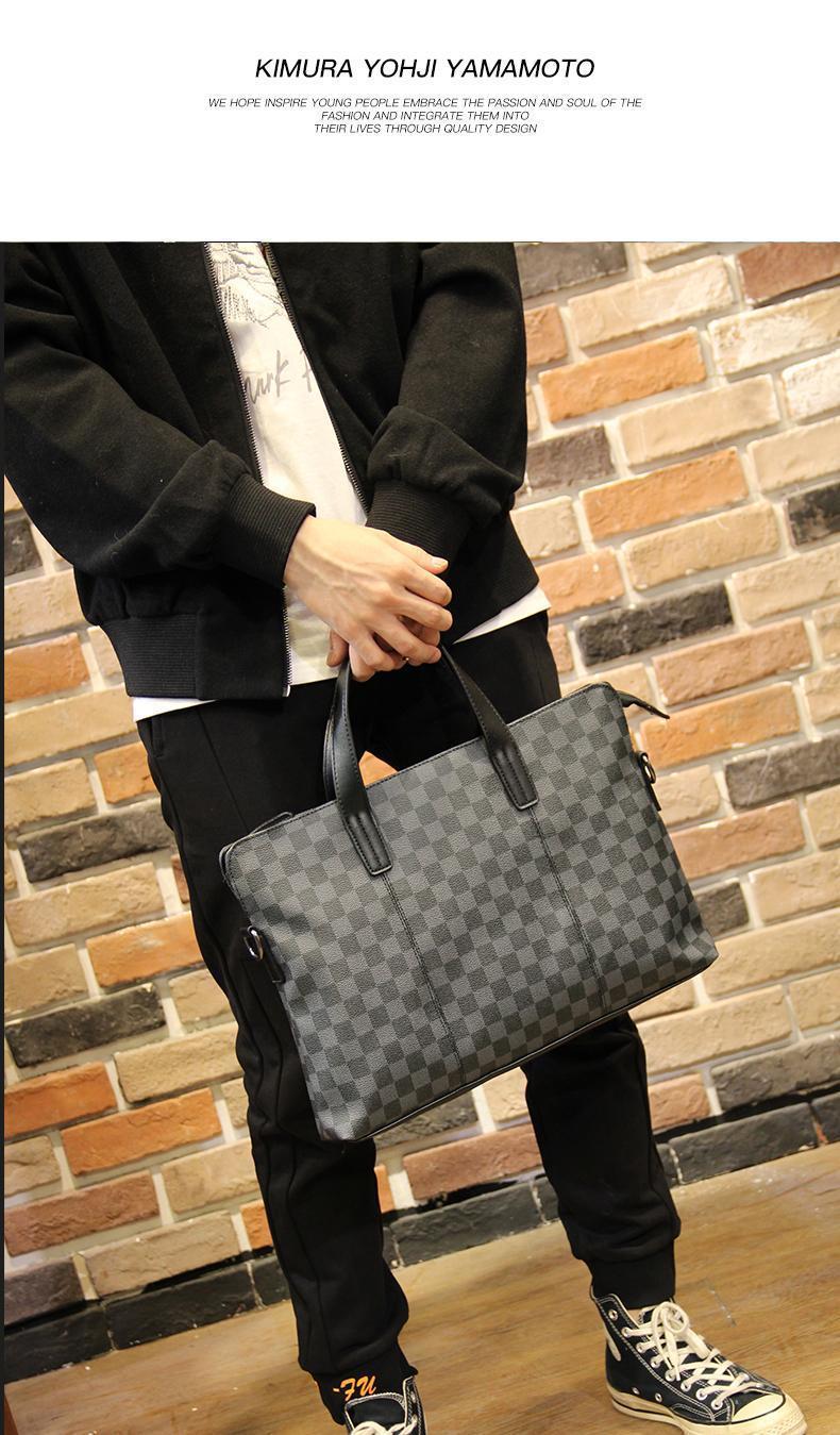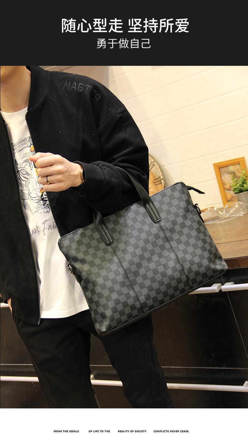 【新款韩版办公男士手提包】单肩斜挎格纹 时尚潮流格子电脑公文包 父亲节礼物