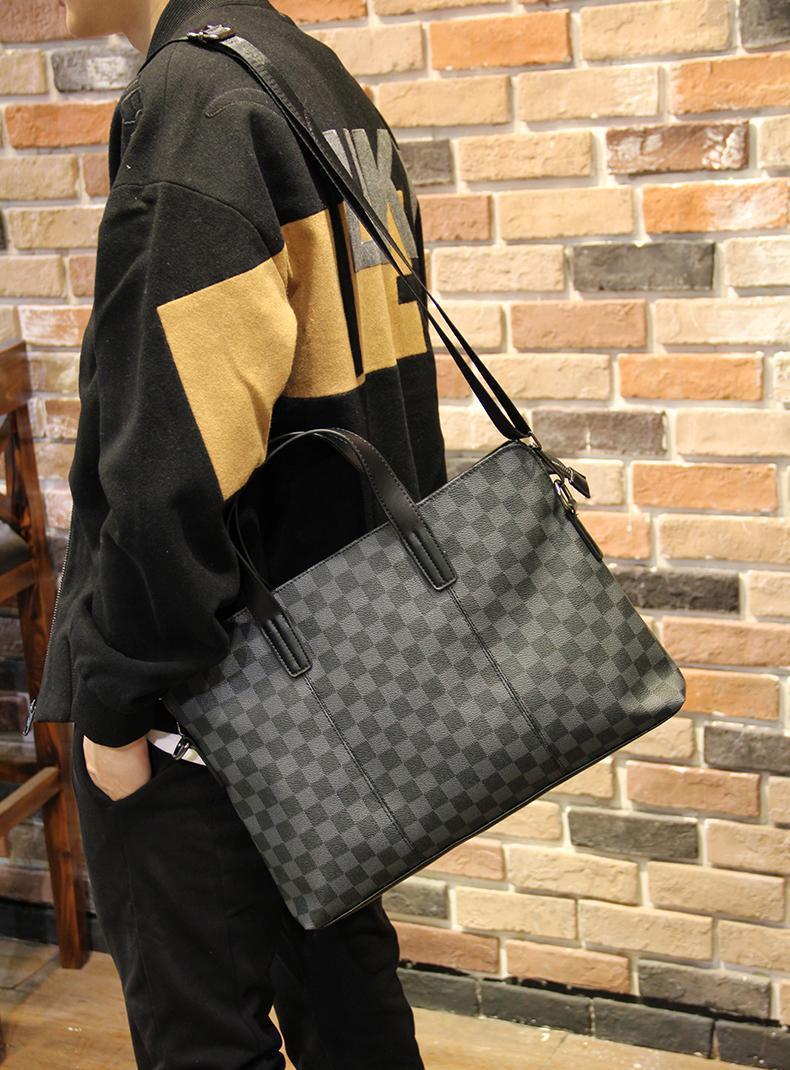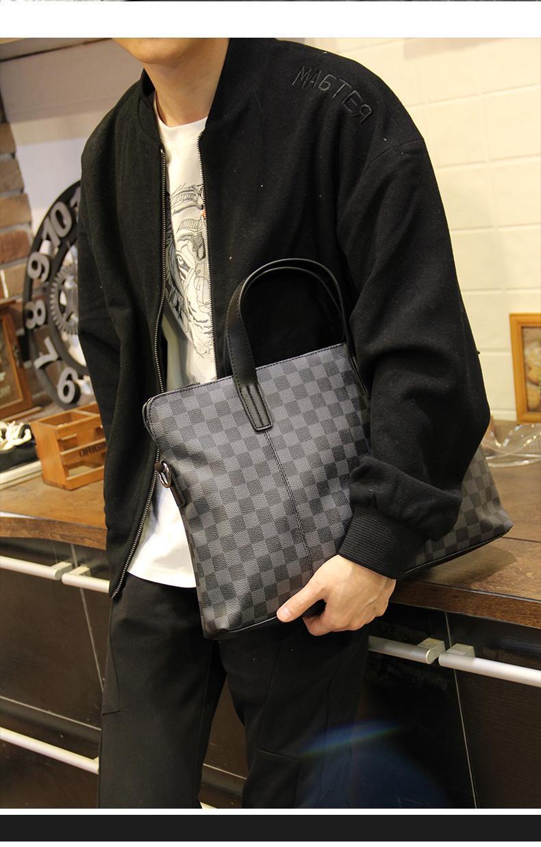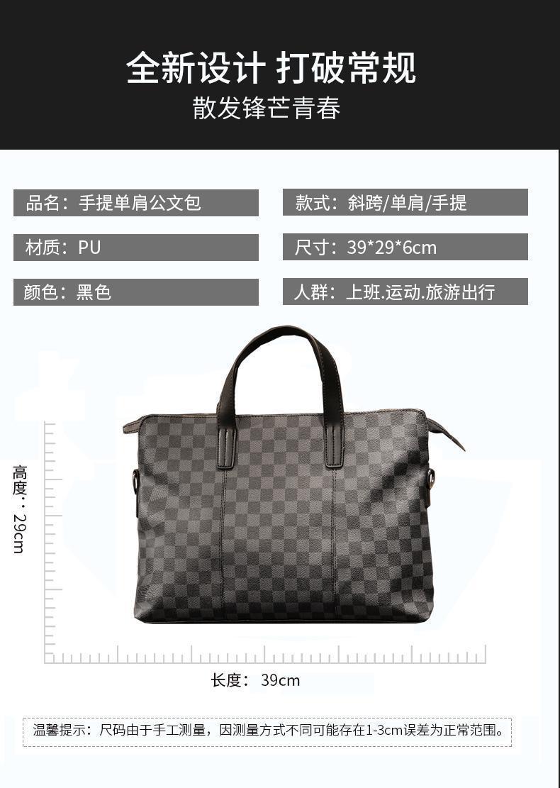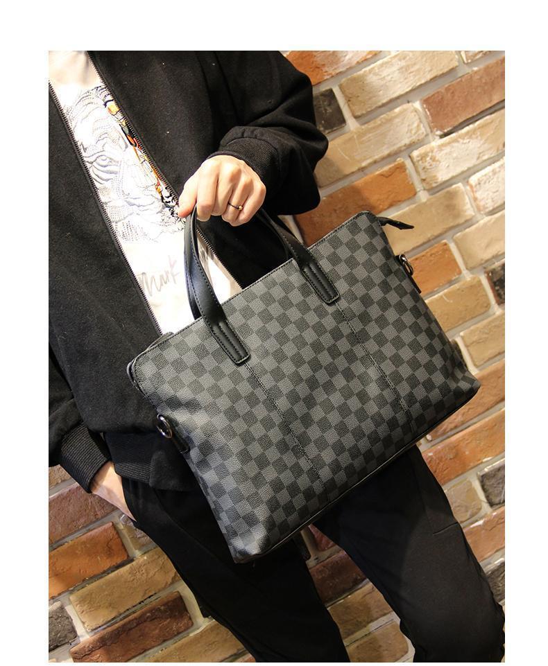 【新款韩版办公男士手提包】单肩斜挎格纹 时尚潮流格子电脑公文包 父亲节礼物