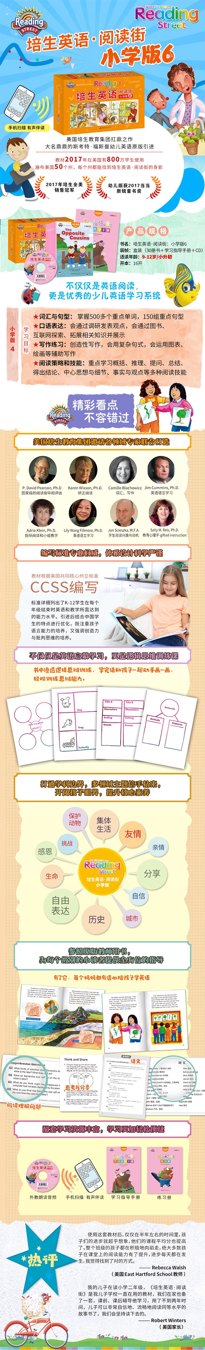 “培生英语·阅读街”源自美国培生教育集团鼎立之作——斯考特·福斯曼英语分级教材,培生集团斥资3.5亿美金,为21世纪新生代儿童打造,K-6年级综合阅读英语语言课程。