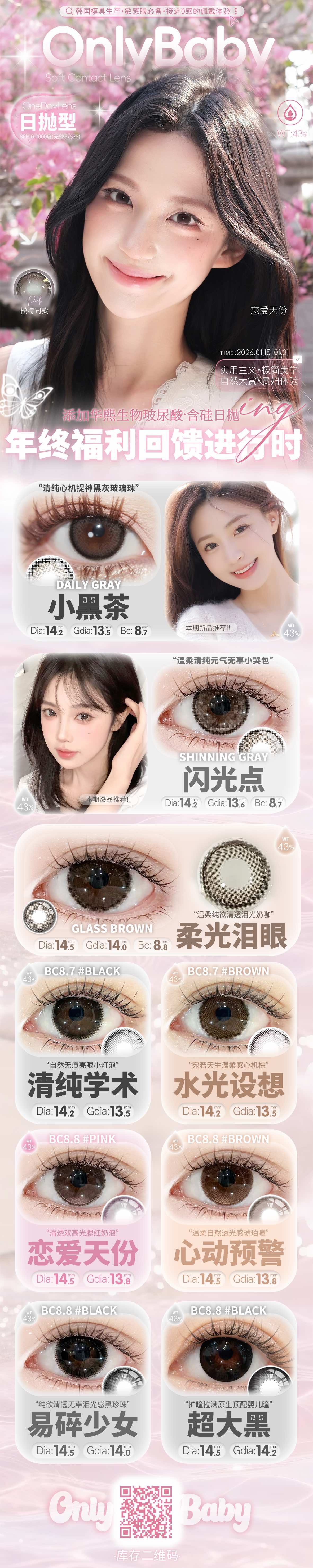 【常规活动-日抛】OnlyBaby日抛全系列活动-14.5mm【度数范围0-1000度 无525/575】