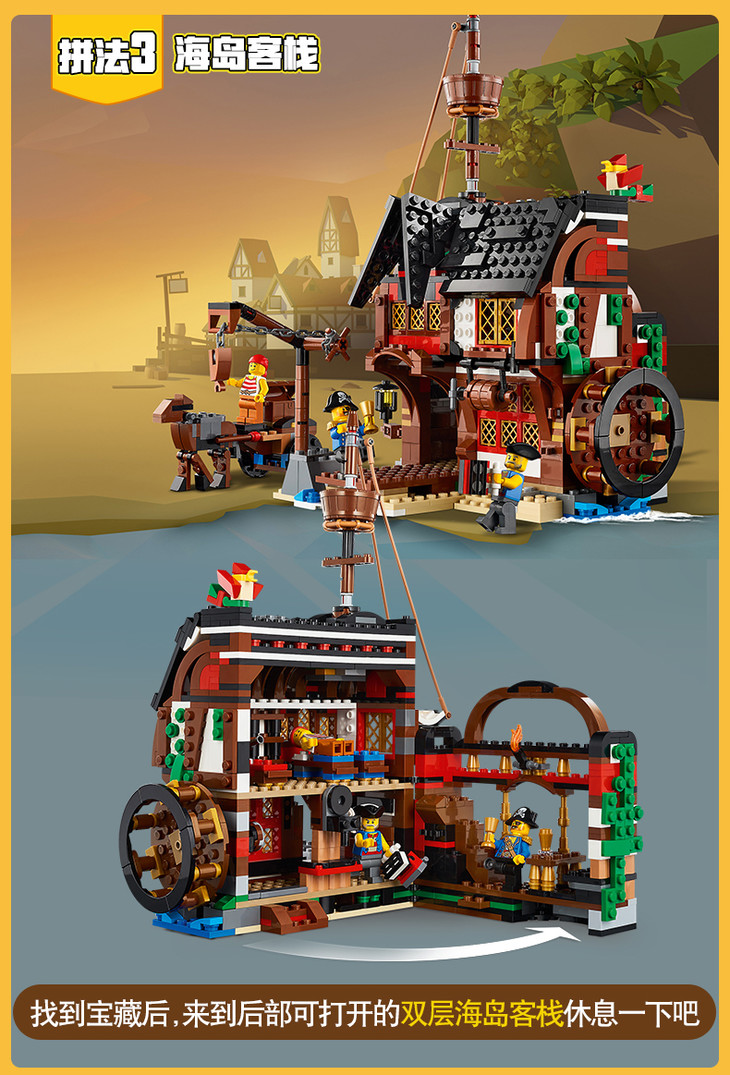 LEGO乐高创意creator系列31109海盗船小颗粒积木玩具三种拼法