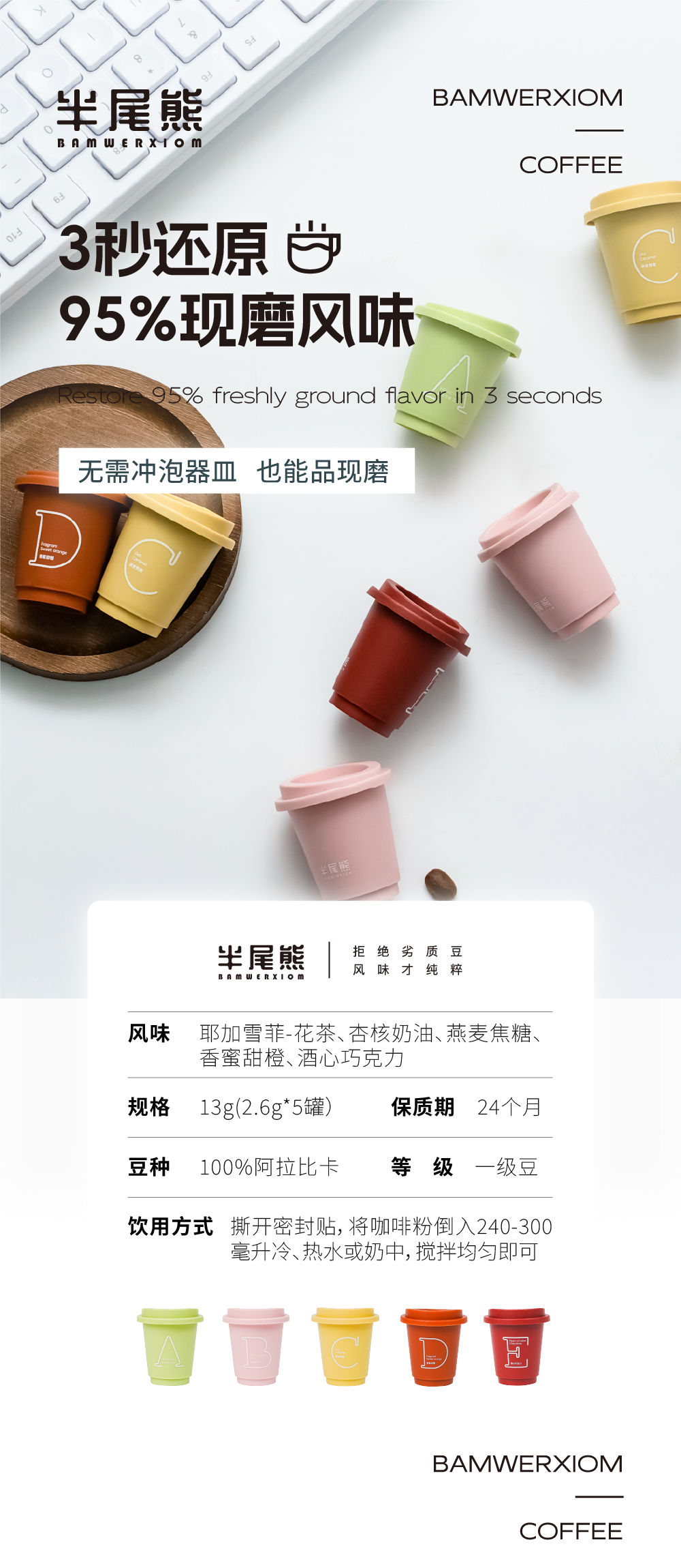 半尾熊丨冷萃冻干咖啡 一盒五种风味 13g(2.6g*5罐 )