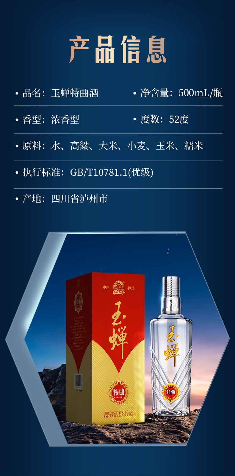 泸州玉蝉特曲酒 52度浓香型白酒 整箱500ml*6瓶包邮