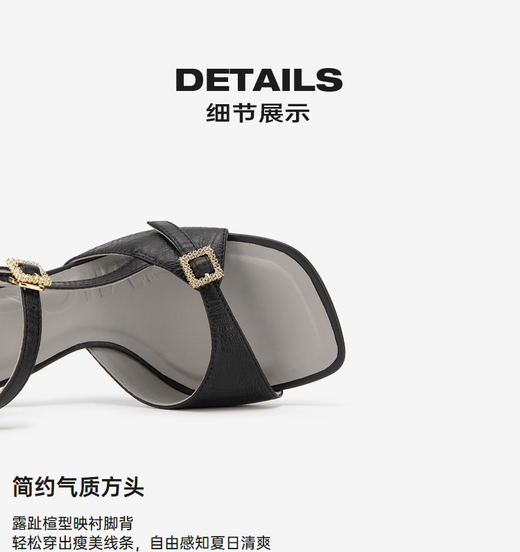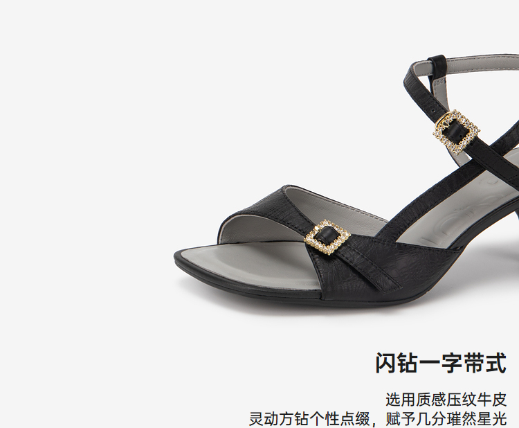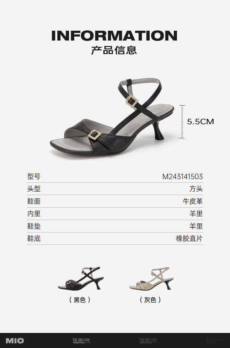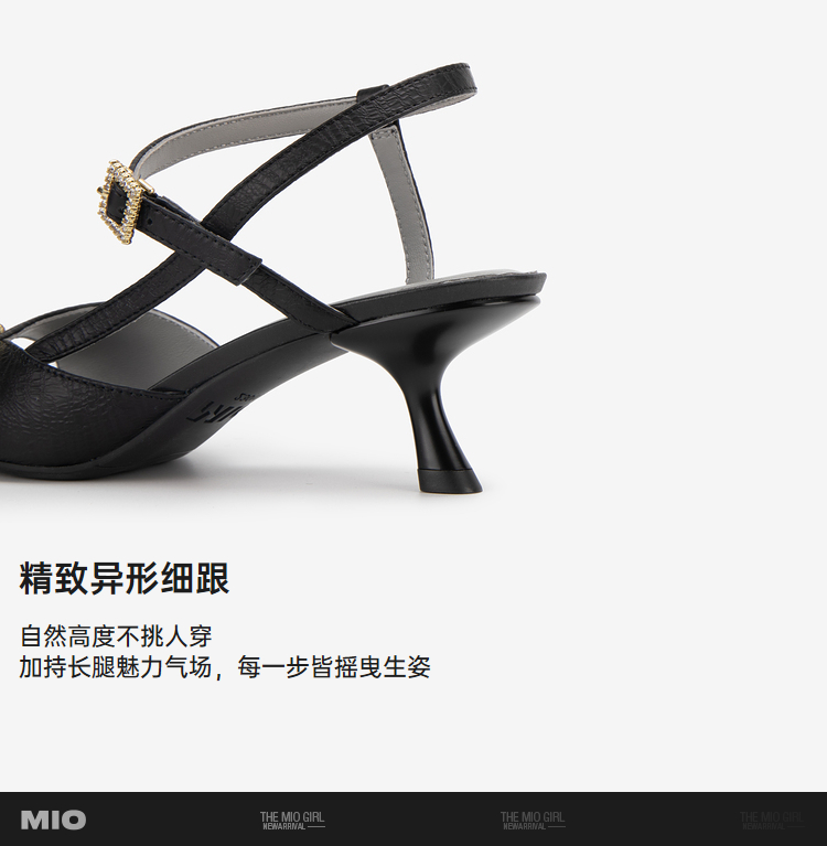 MIO米奥夏季方头高跟时装凉鞋简约质感牛皮革细跟凉鞋女鞋M243141503