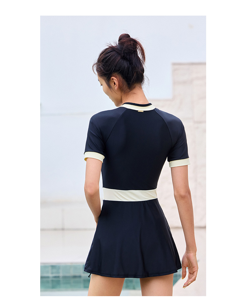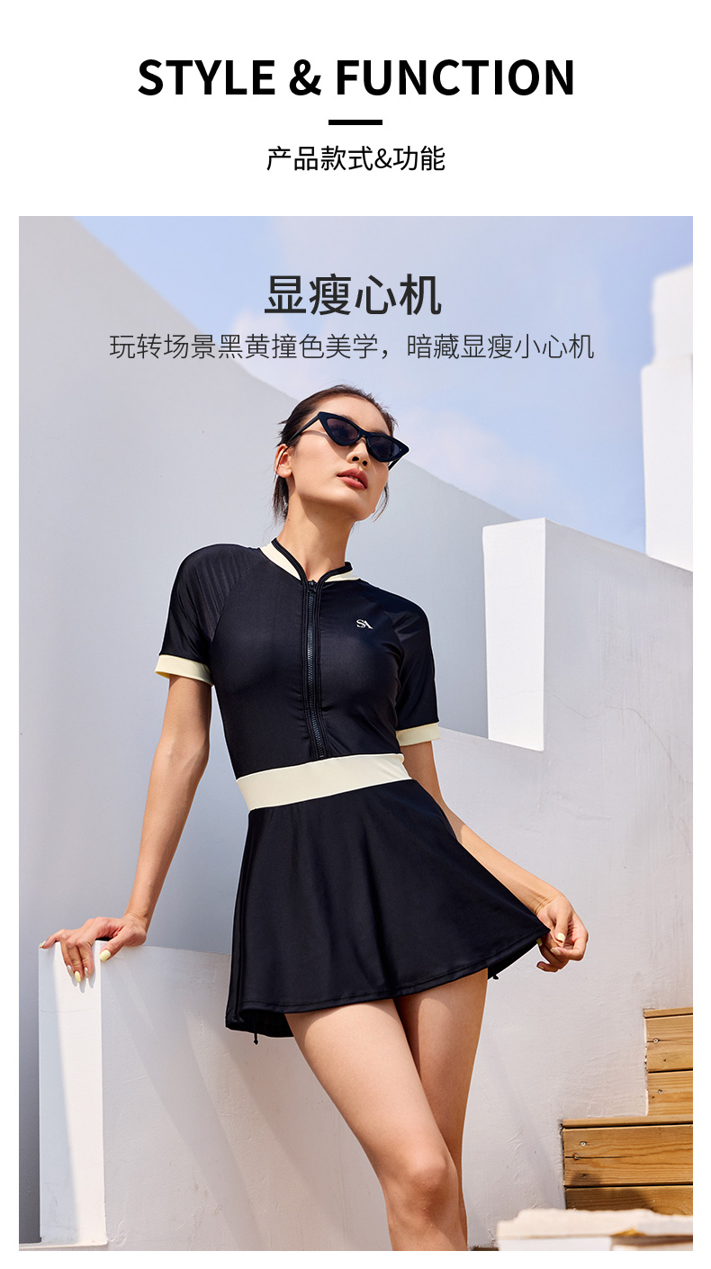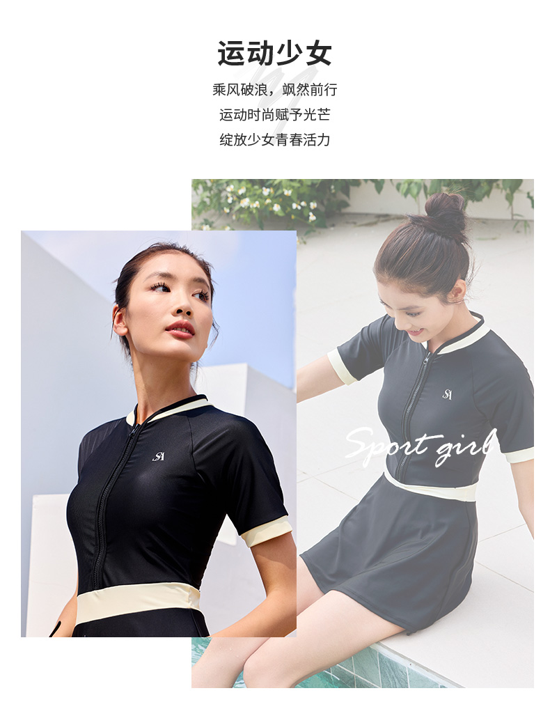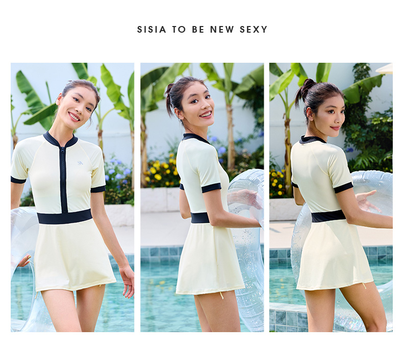 sisia泳衣女新款女士连体泳衣显瘦运动保守遮肚度假泡温泉游泳衣