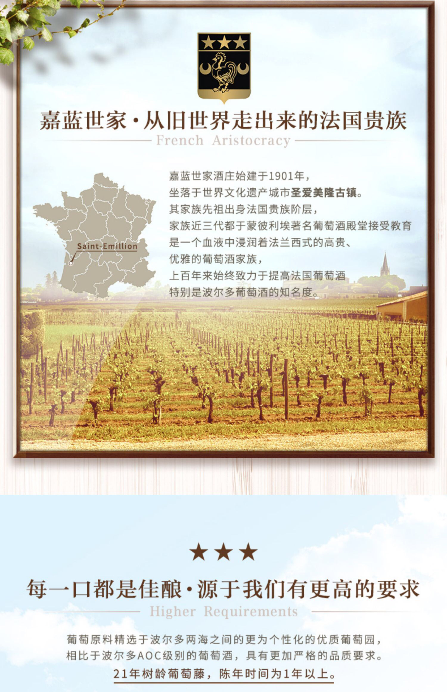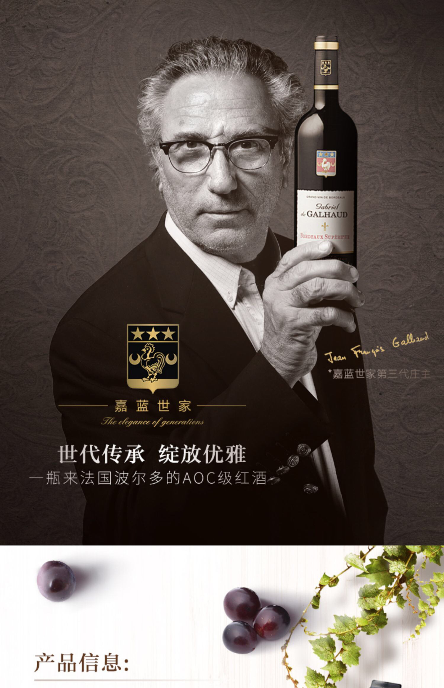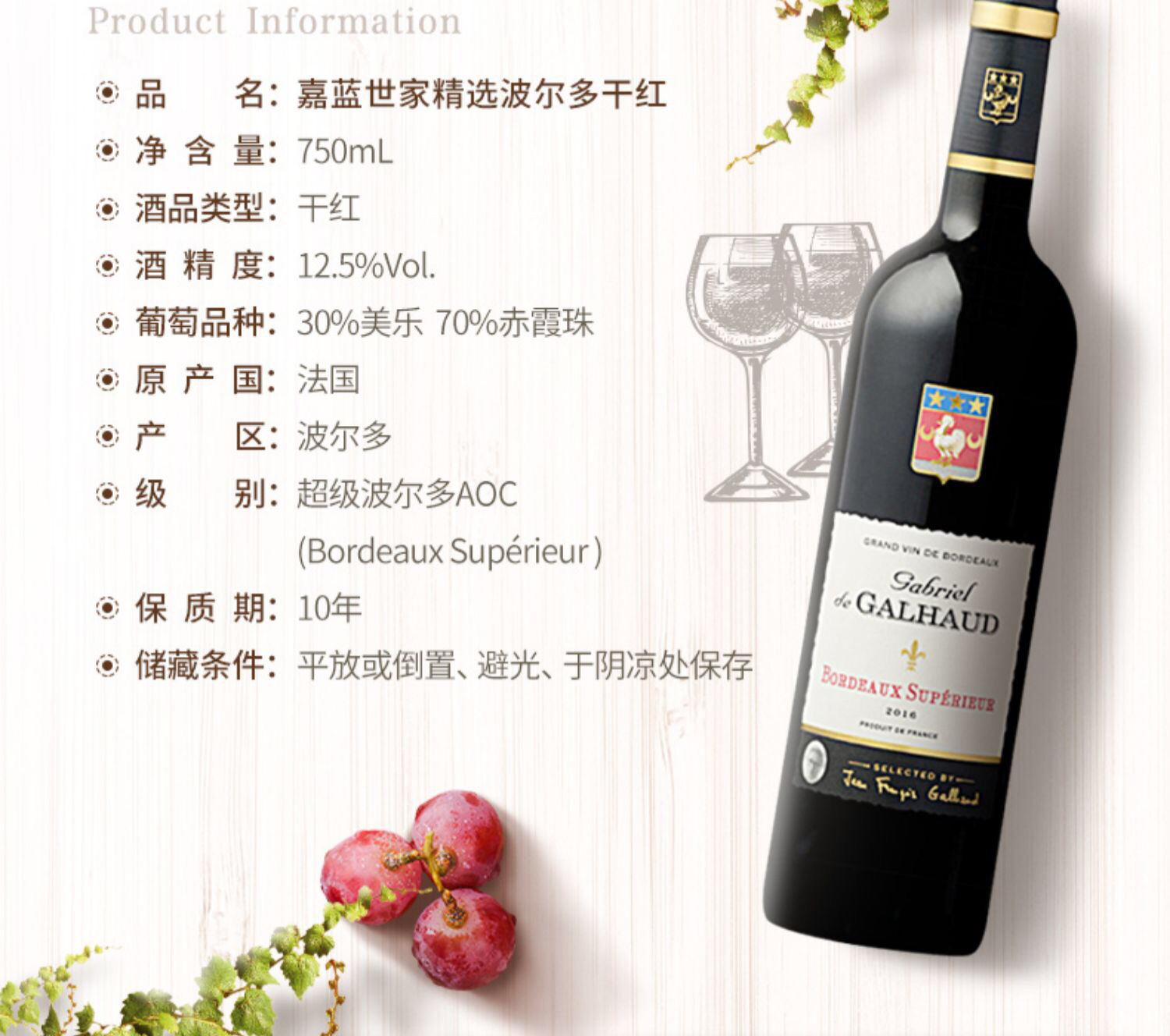 嘉蓝世家精选波尔多干红葡萄酒750ml 6瓶(四川省内包邮)