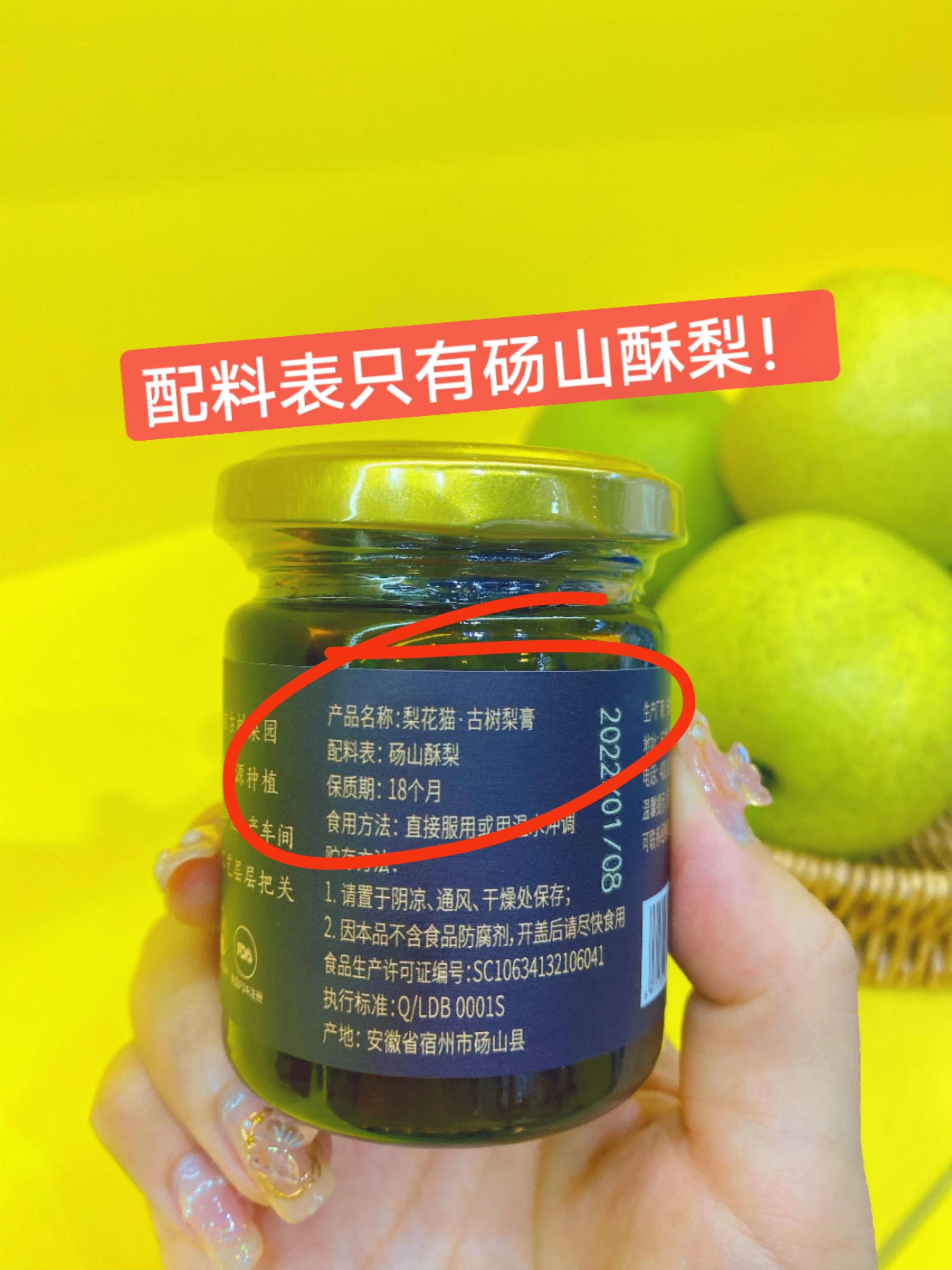 5.100%砀山酥梨熬制,配料表里只有梨,一瓶=16枚头茬酥梨