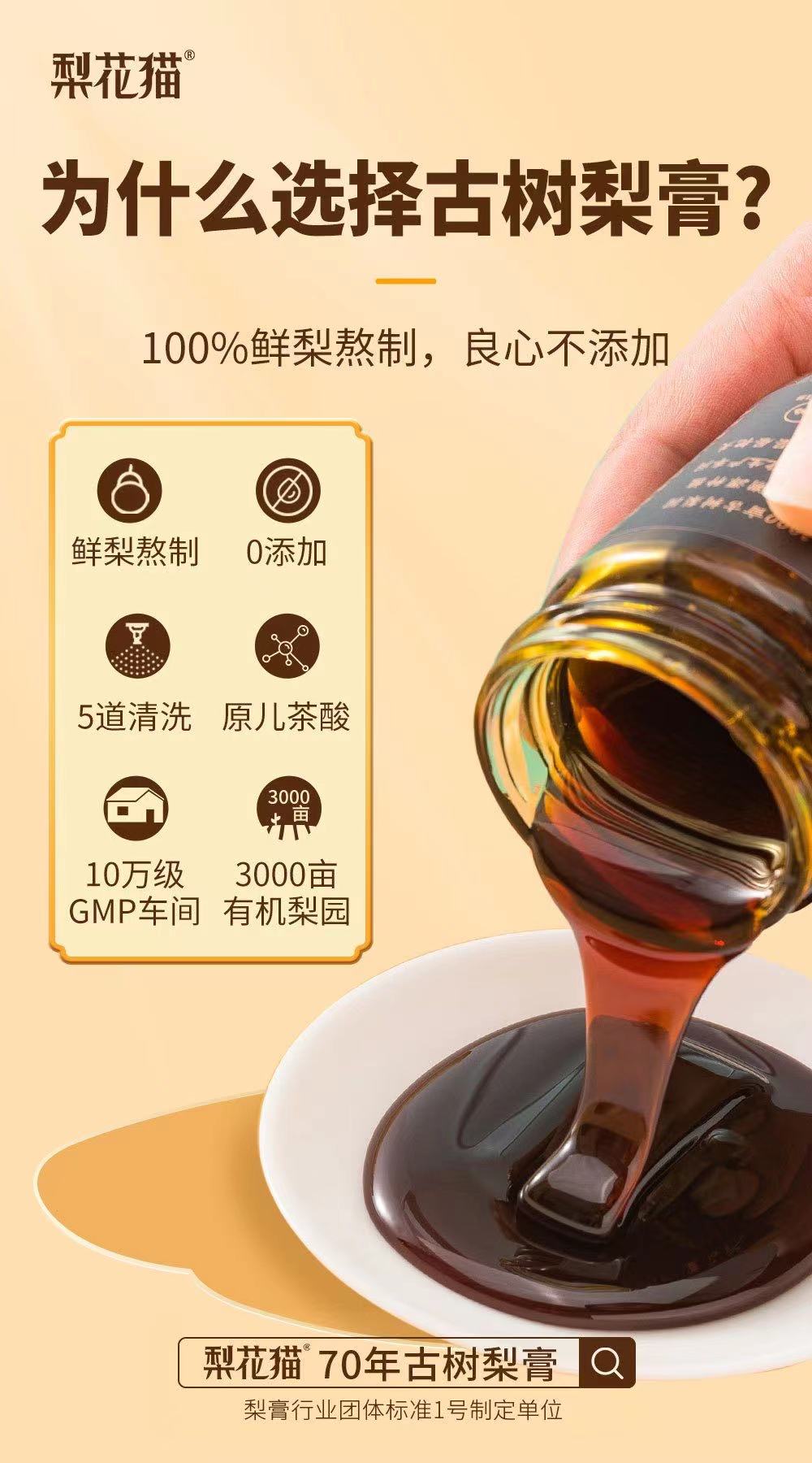 入秋必囤!3瓶69.9!再送3支体验装!【梨花猫古树梨膏】梨膏中的“爱马仕”!最放心的纯鲜果梨膏!!