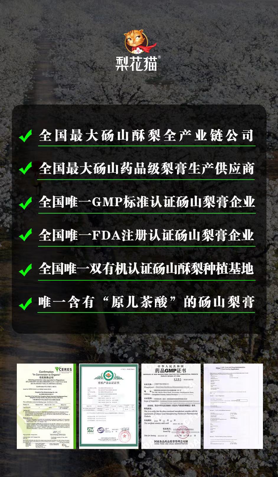 梨花猫是中国梨膏行业团体标准1号起草单位