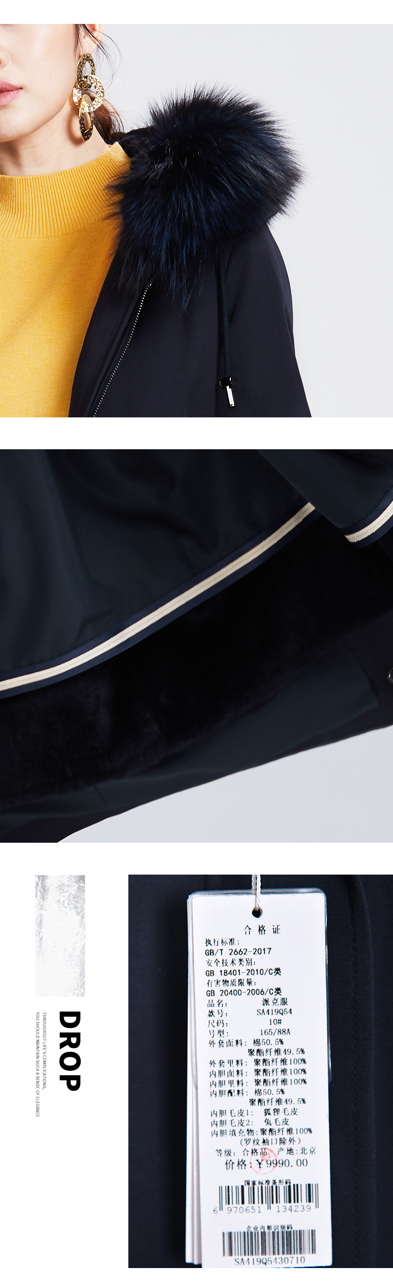 SAINT L’UCK/圣媛正品可拆卸兔毛内胆狐狸毛领派克服SA419Q54