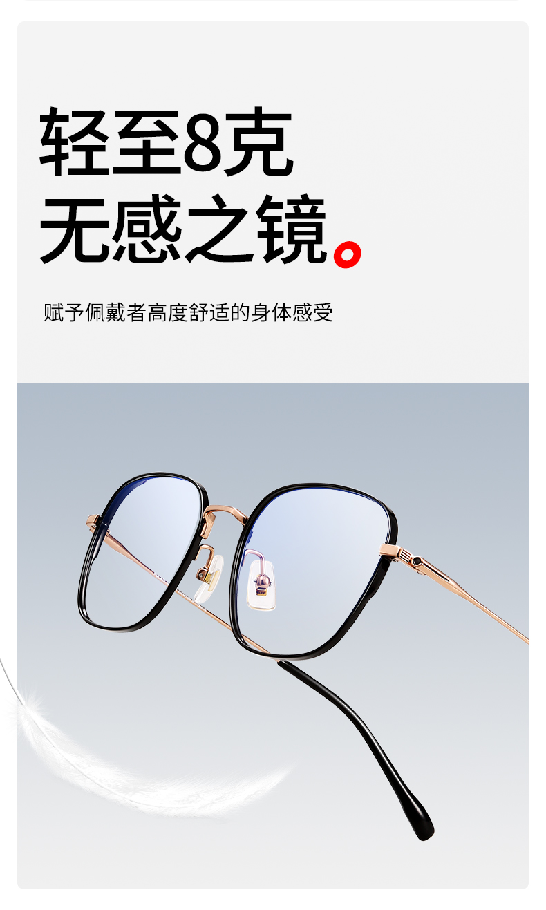 普莱斯光学镜框2121 复古文艺修颜镜框 轻至8克 纯钛材质 男女同款 三色可选