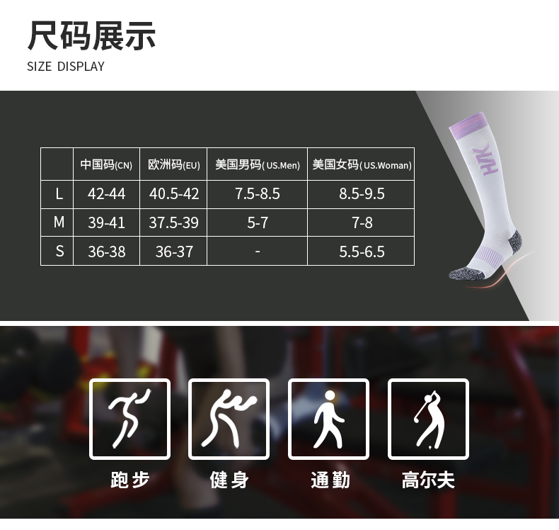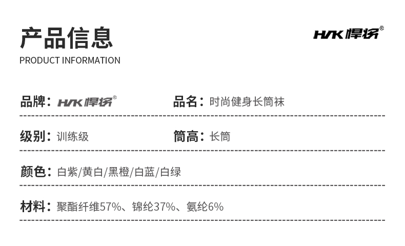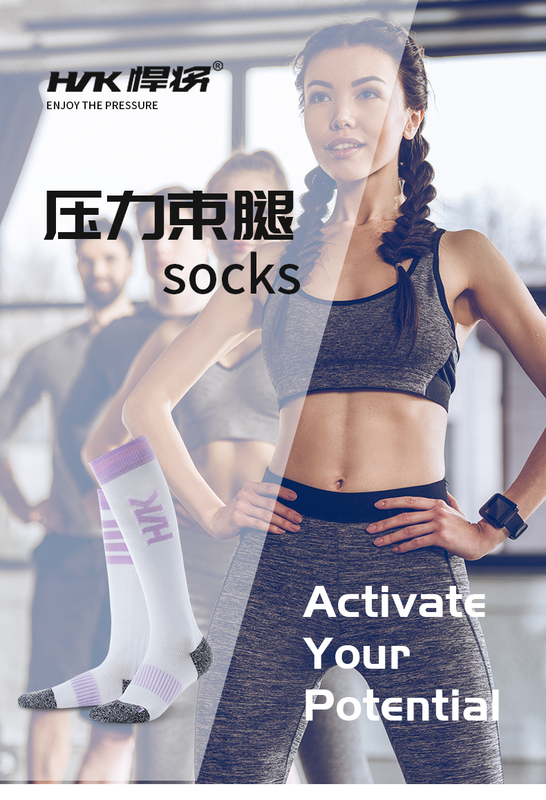 HNK/悍将时尚健身袜长筒袜透气毛巾底户外跑步柔软轻度压力袜