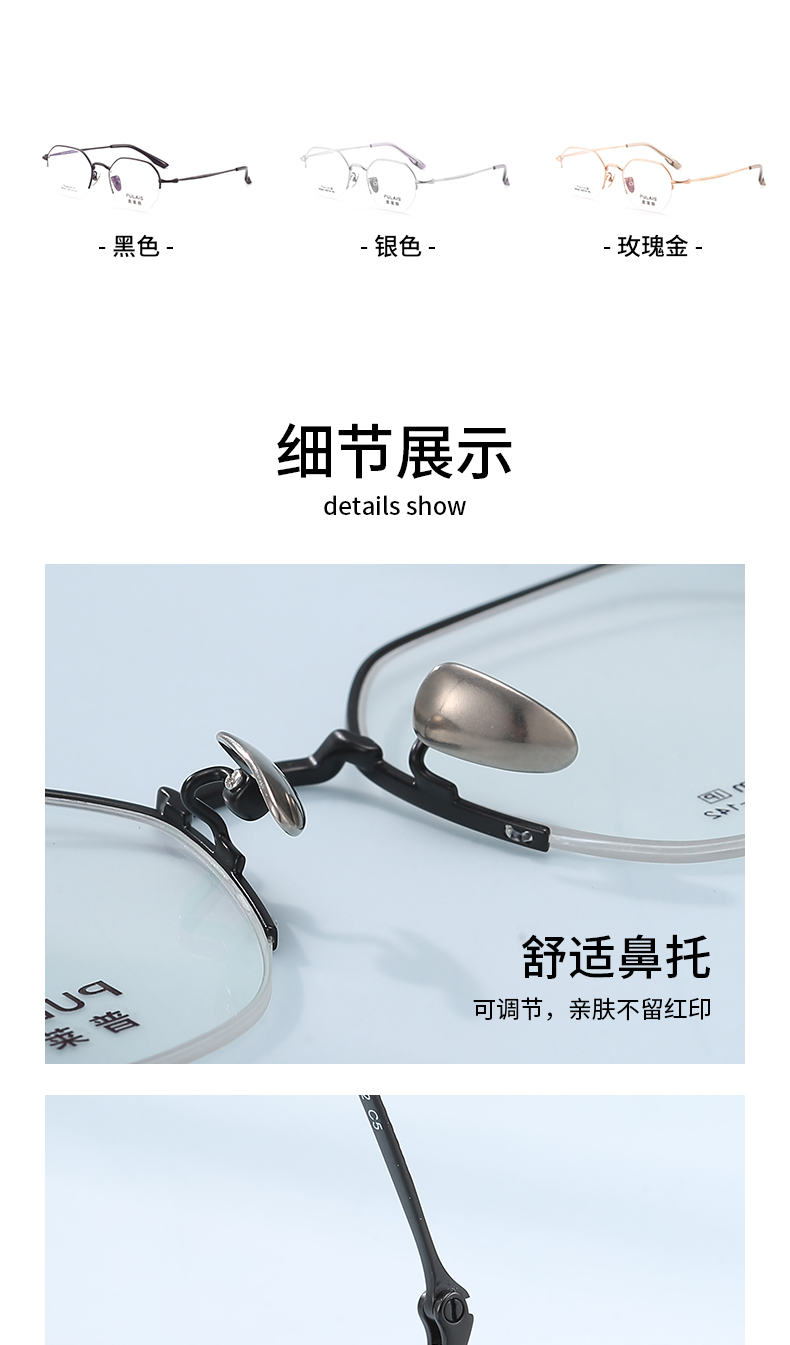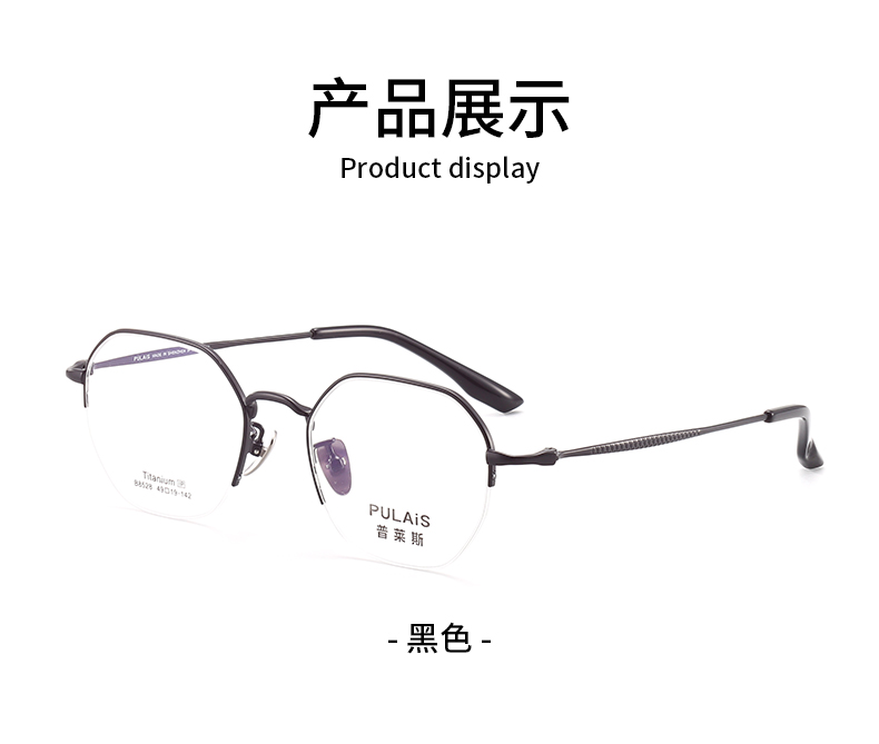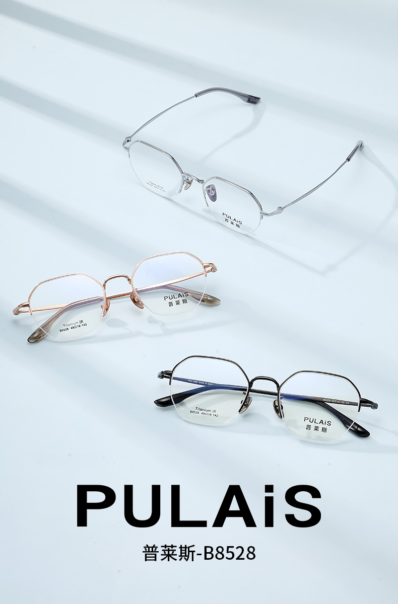 普莱斯光学镜框B8528 经典半框 半钛材质 舒适鼻托 稳固桩头 复古休闲 三色可选