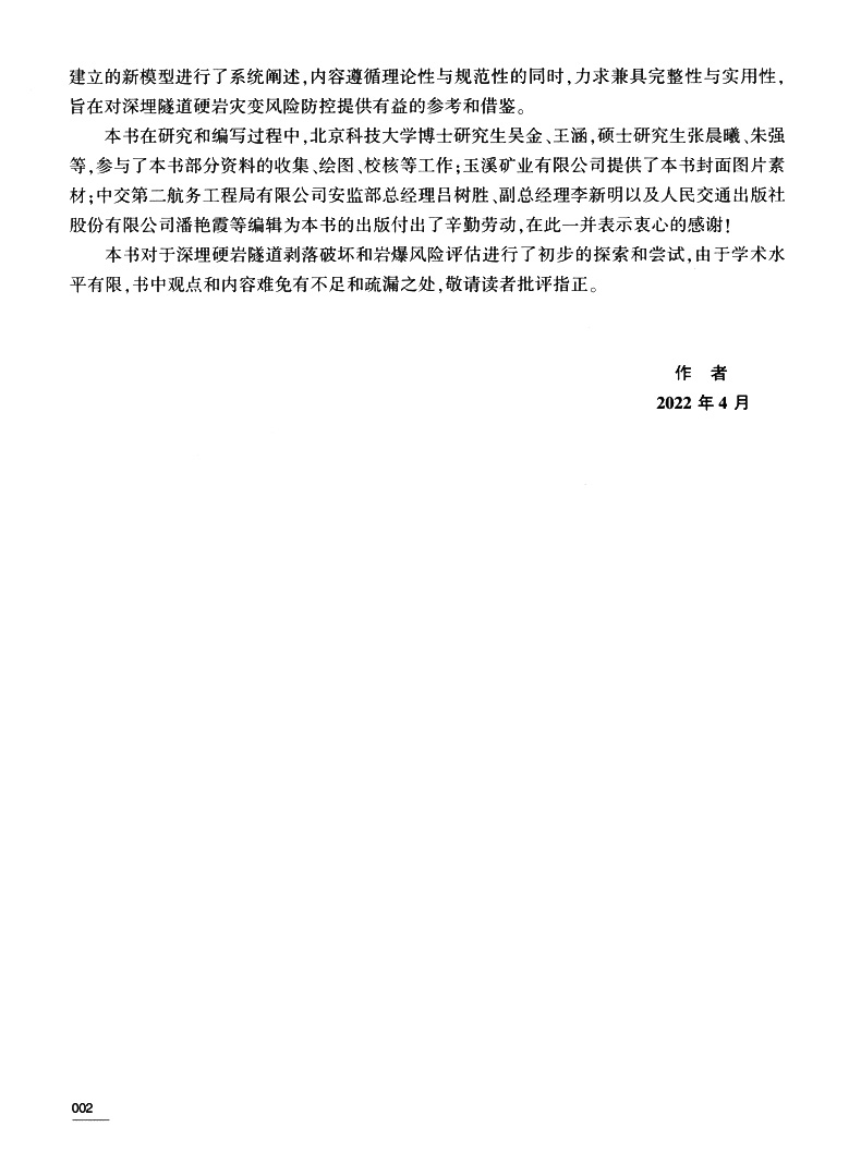书名:深埋隧道硬岩灾变风险评估理论与方法