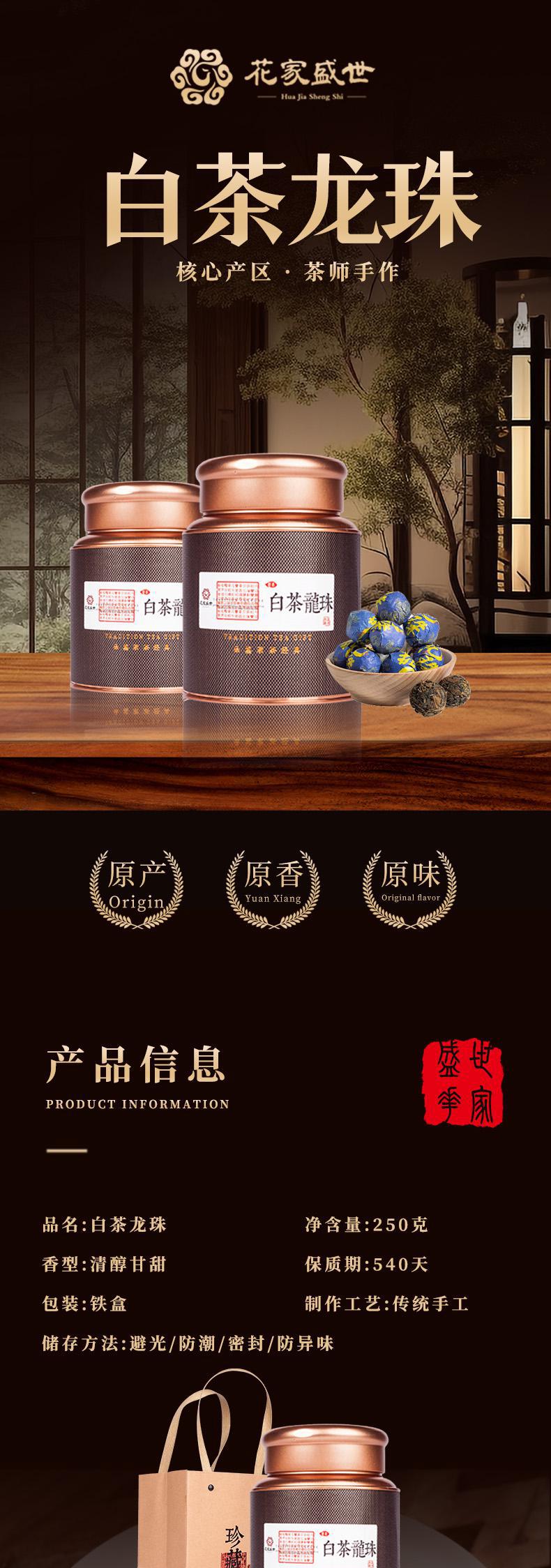 【自营】花家盛世 黑罐白茶龙珠250g礼袋装绿茶红茶新鲜健康美味 HJSS-HG-BCLZ-250