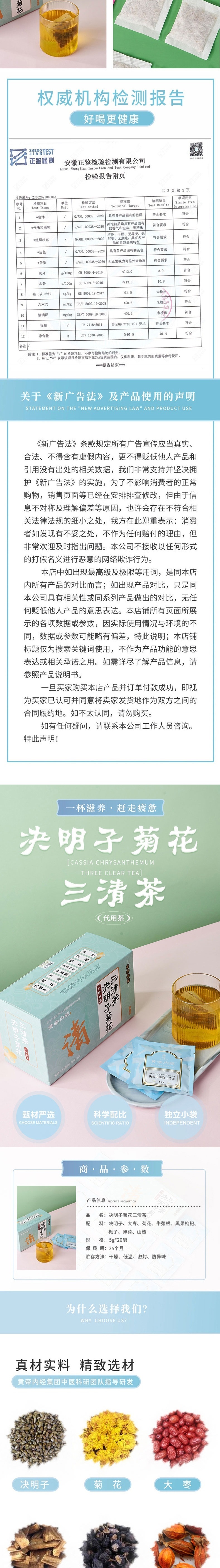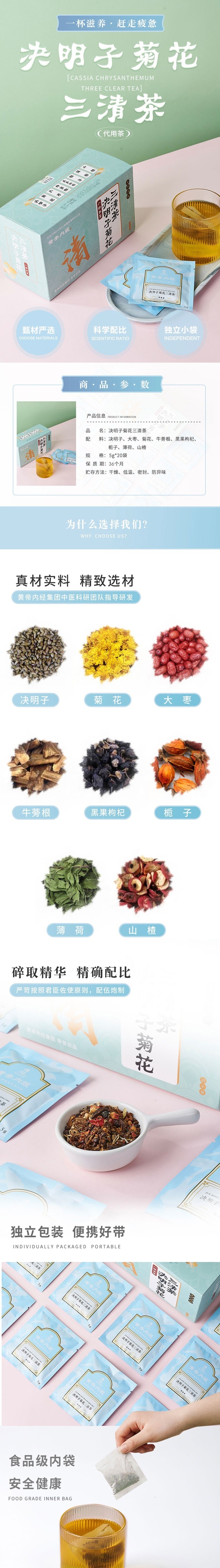 【自营】邵氏元 决明子菊花三清茶100克(5克×20小袋)1盒 牛蒡根栀子枸杞组合代用茶清肝明目降火