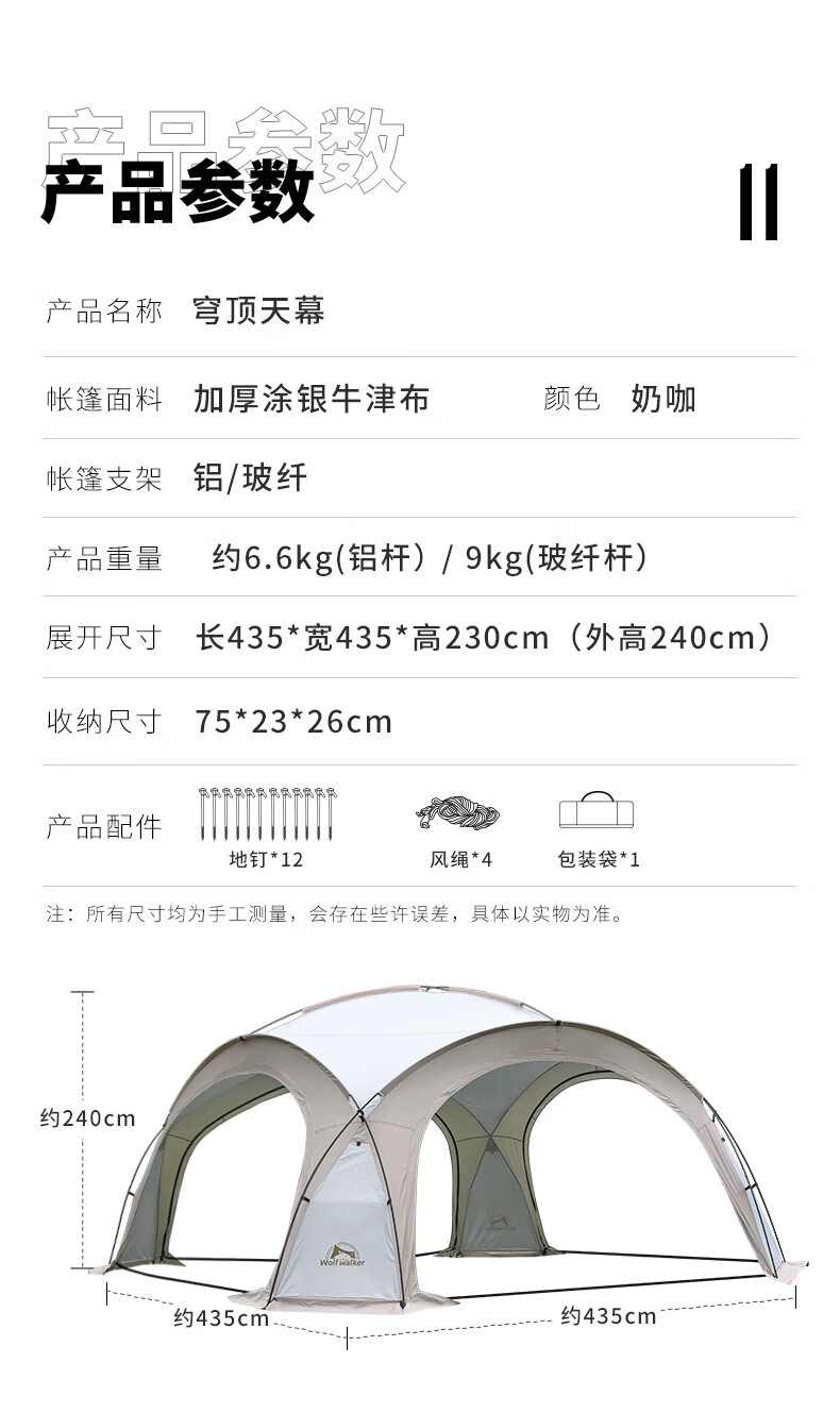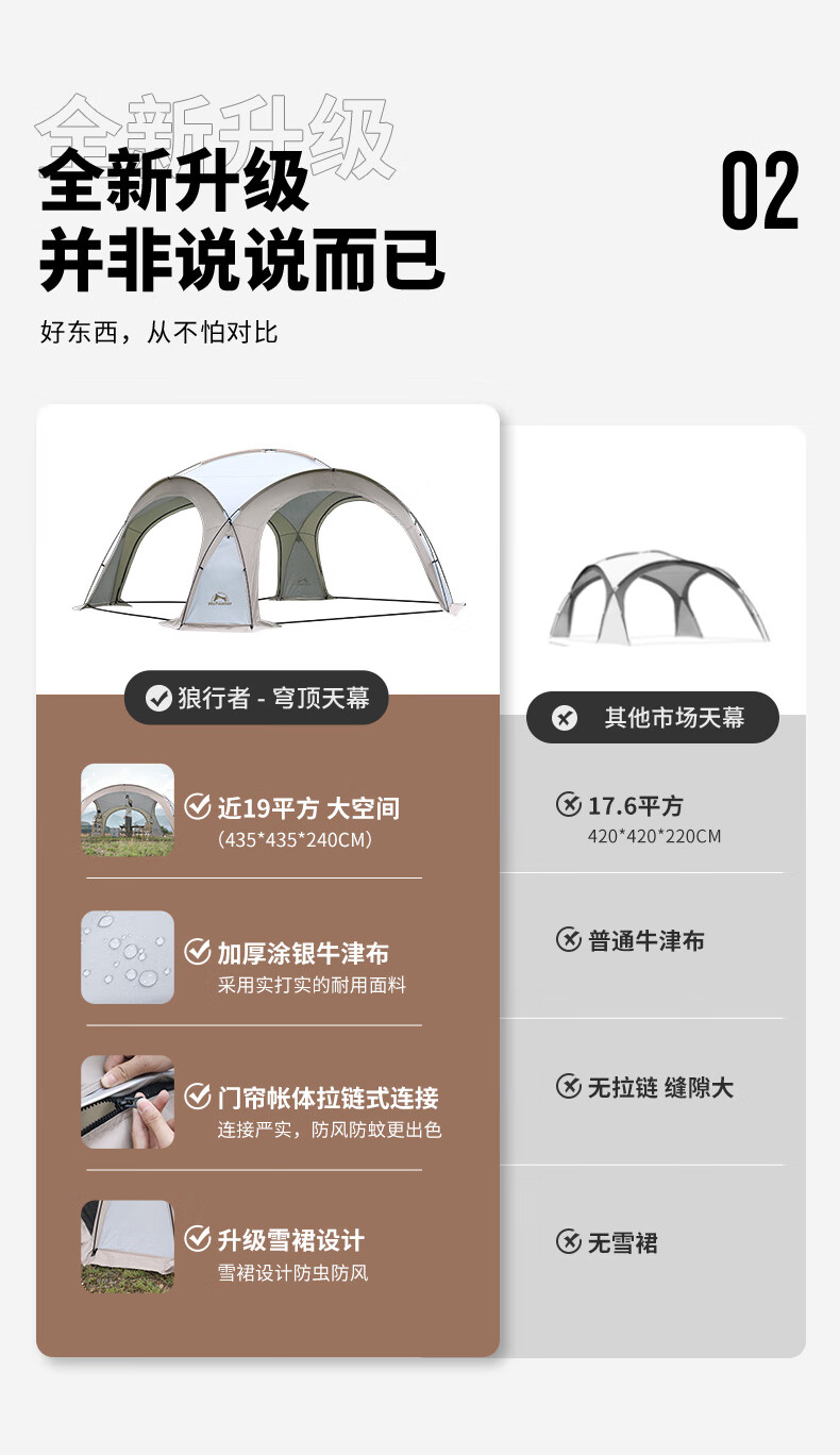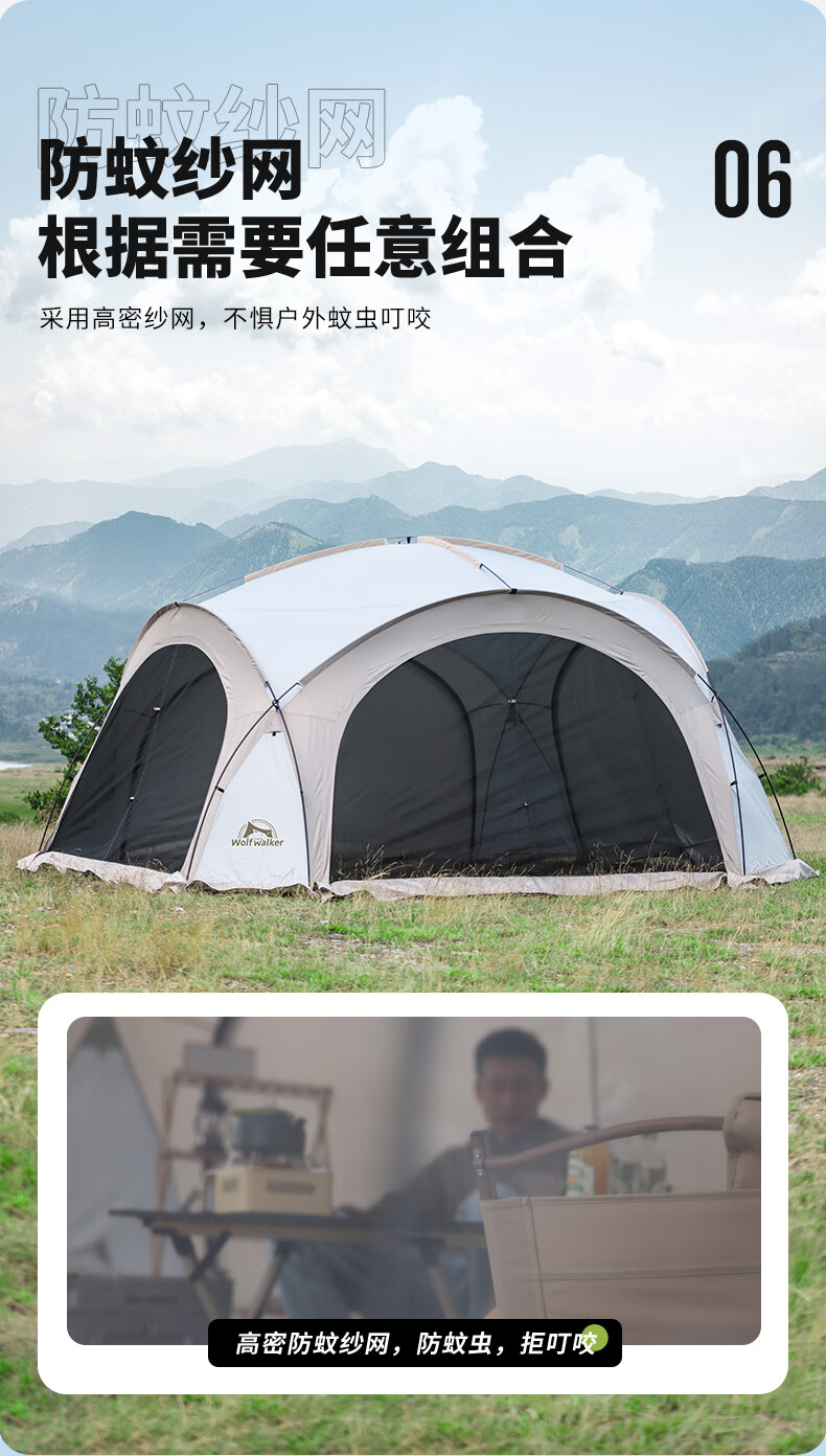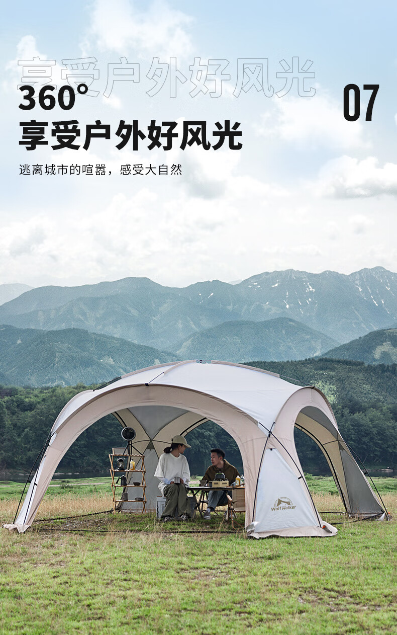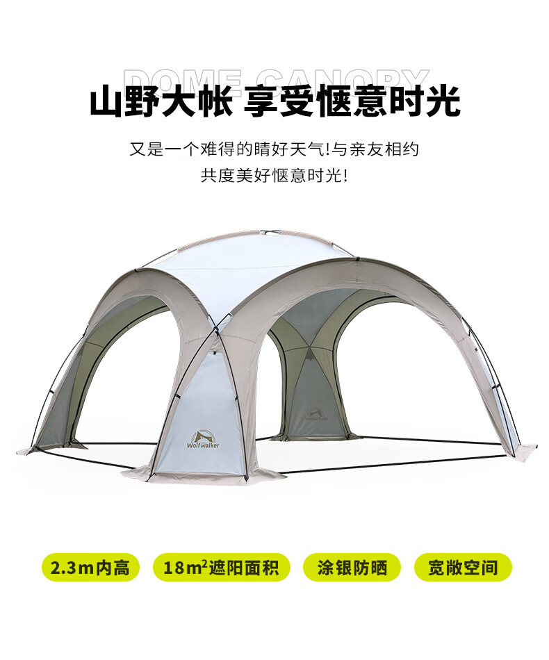 狼行者蒙古包穹顶天幕涂银防晒蛋壳大帐篷户外露营大空间超大遮阳棚圆形