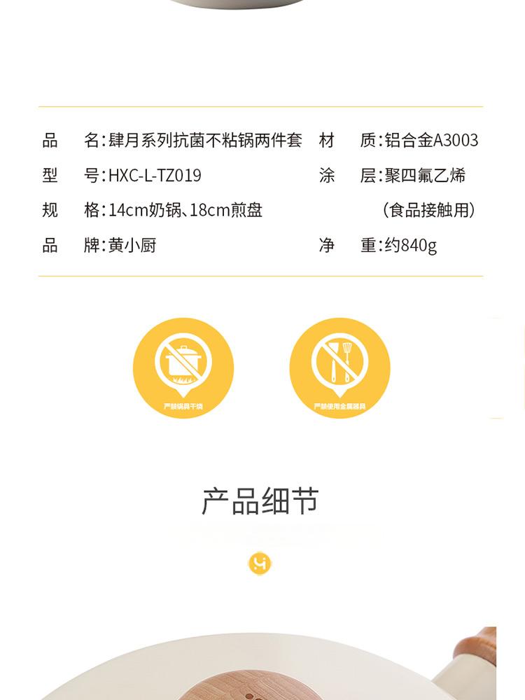 黄小厨(NOOBHUANG)黄小厨肆月系列抗菌不粘锅两件套HXC-L-TZ019