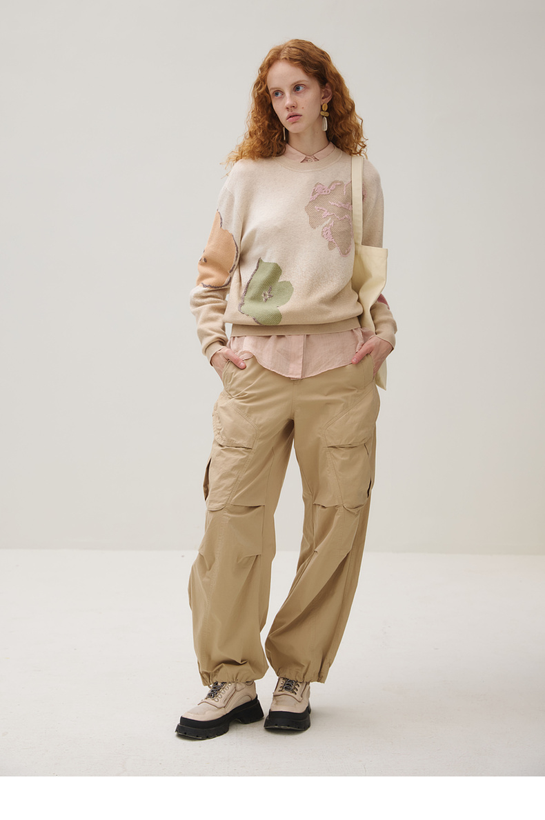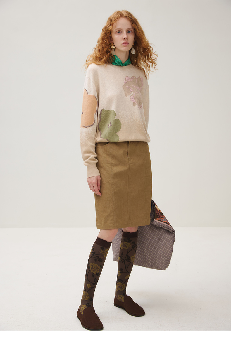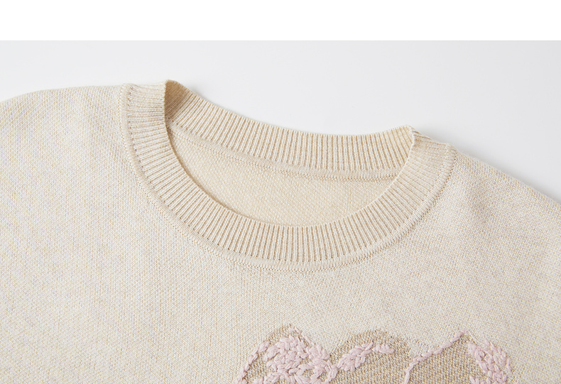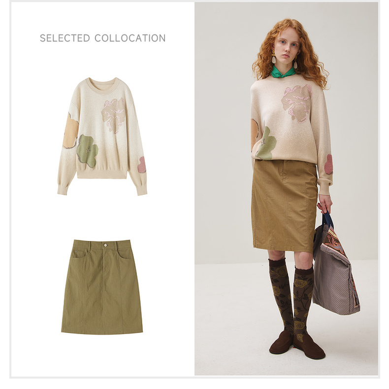 谜底圆领套头针织衫女2025秋新品柔软保暖原创提花毛衣253MZ1371