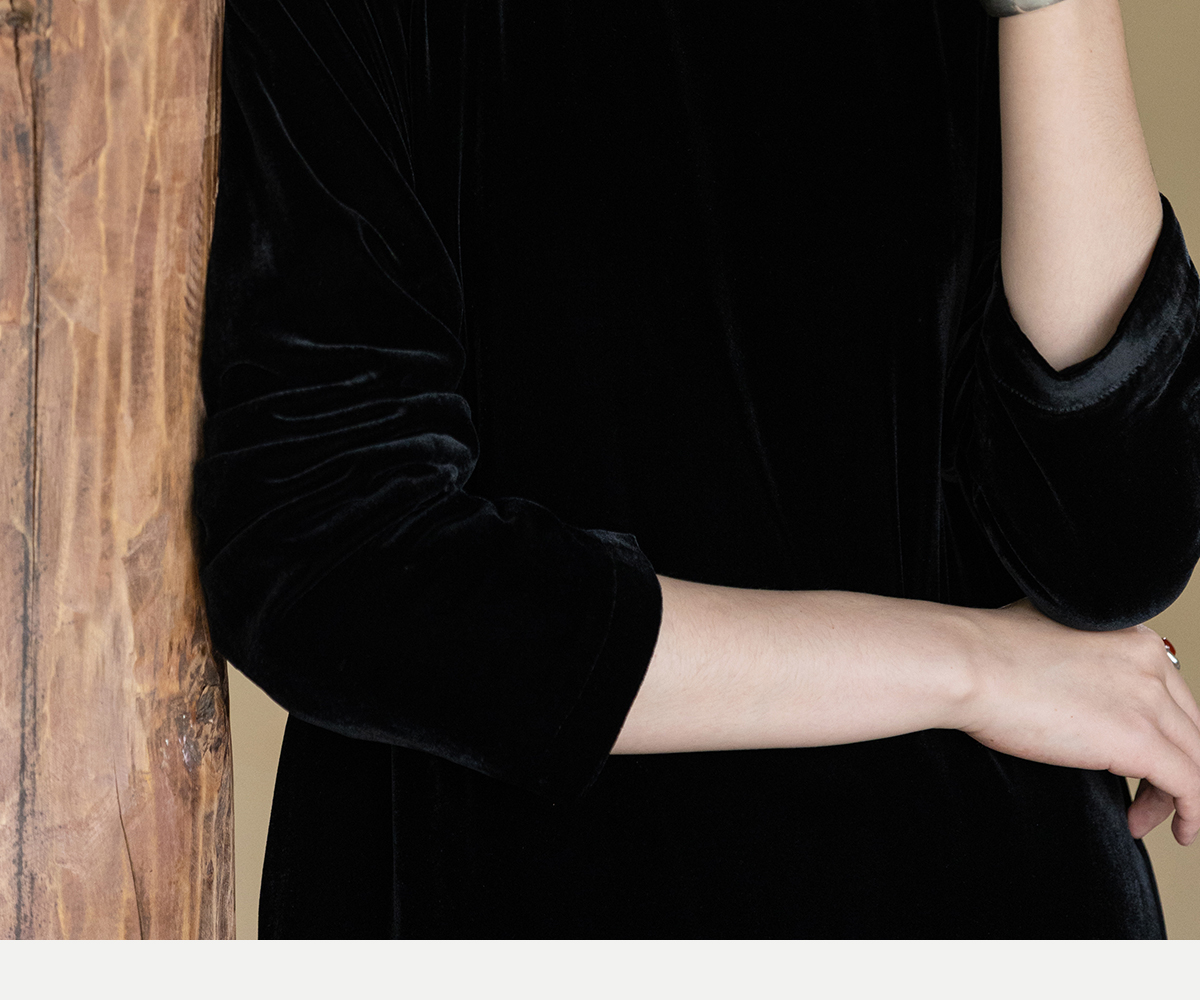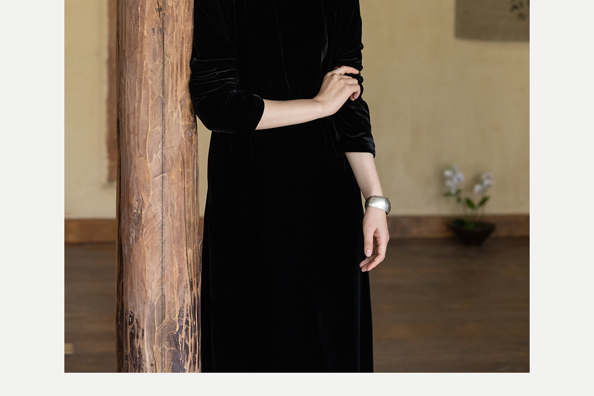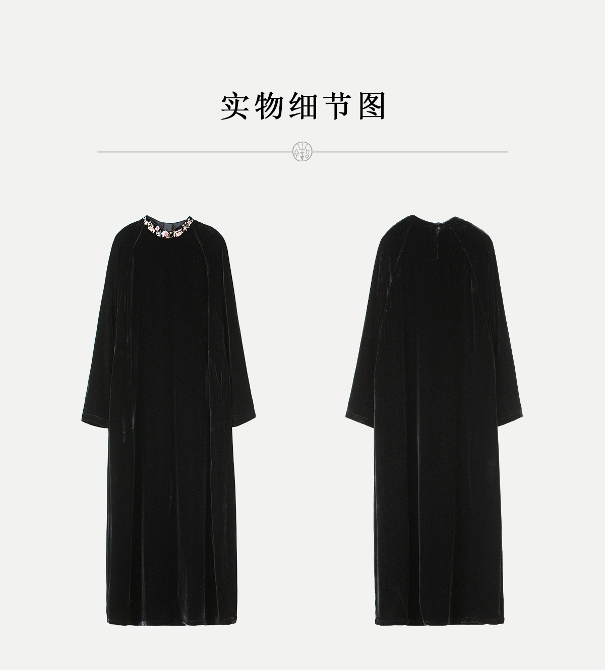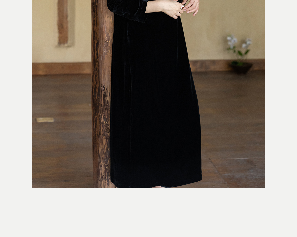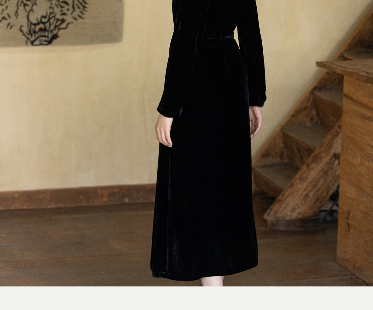 牧衣游原创 丝绒手工刺绣连衣裙黑色高级感宽松复古气质长裙 迎岚
