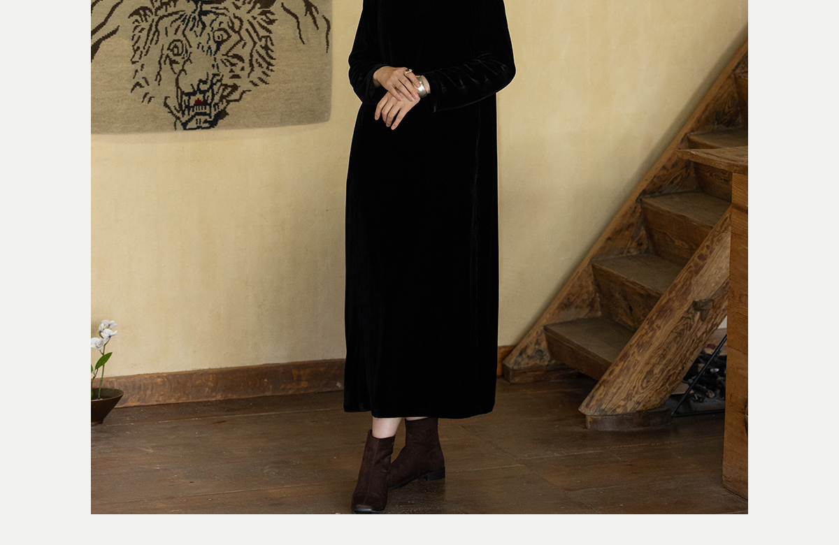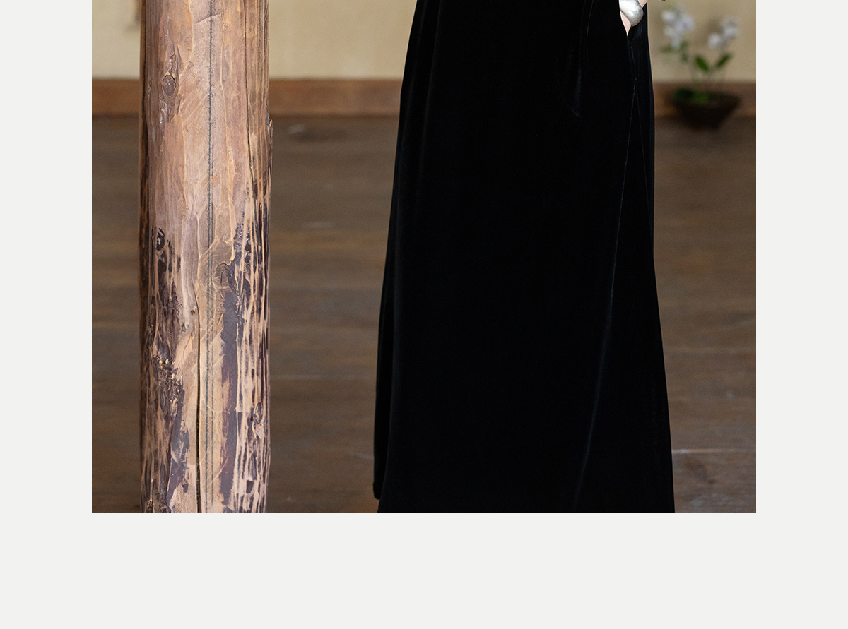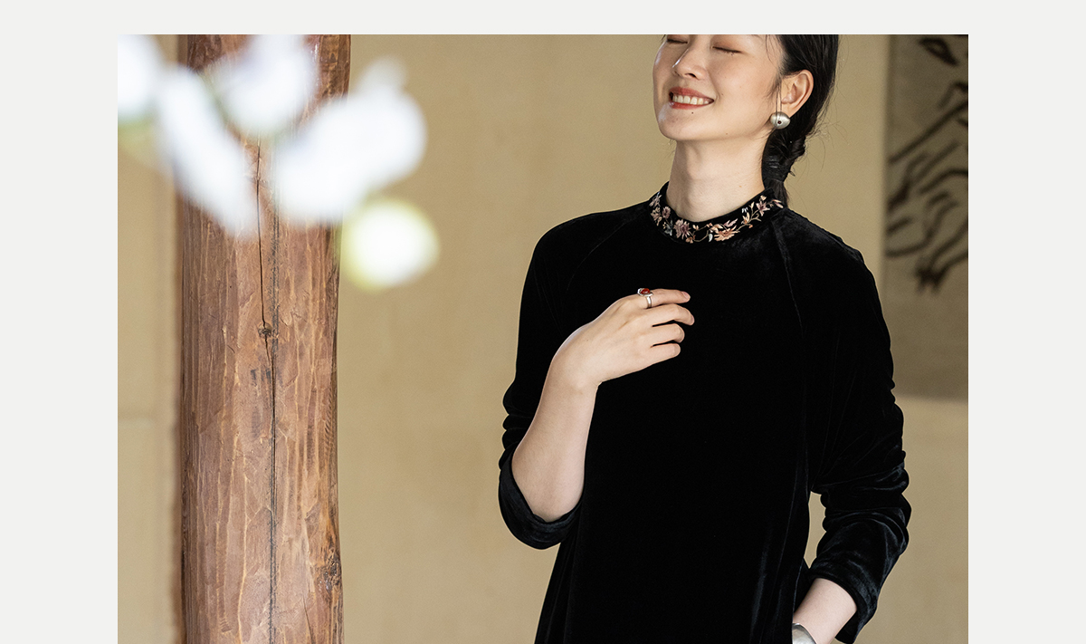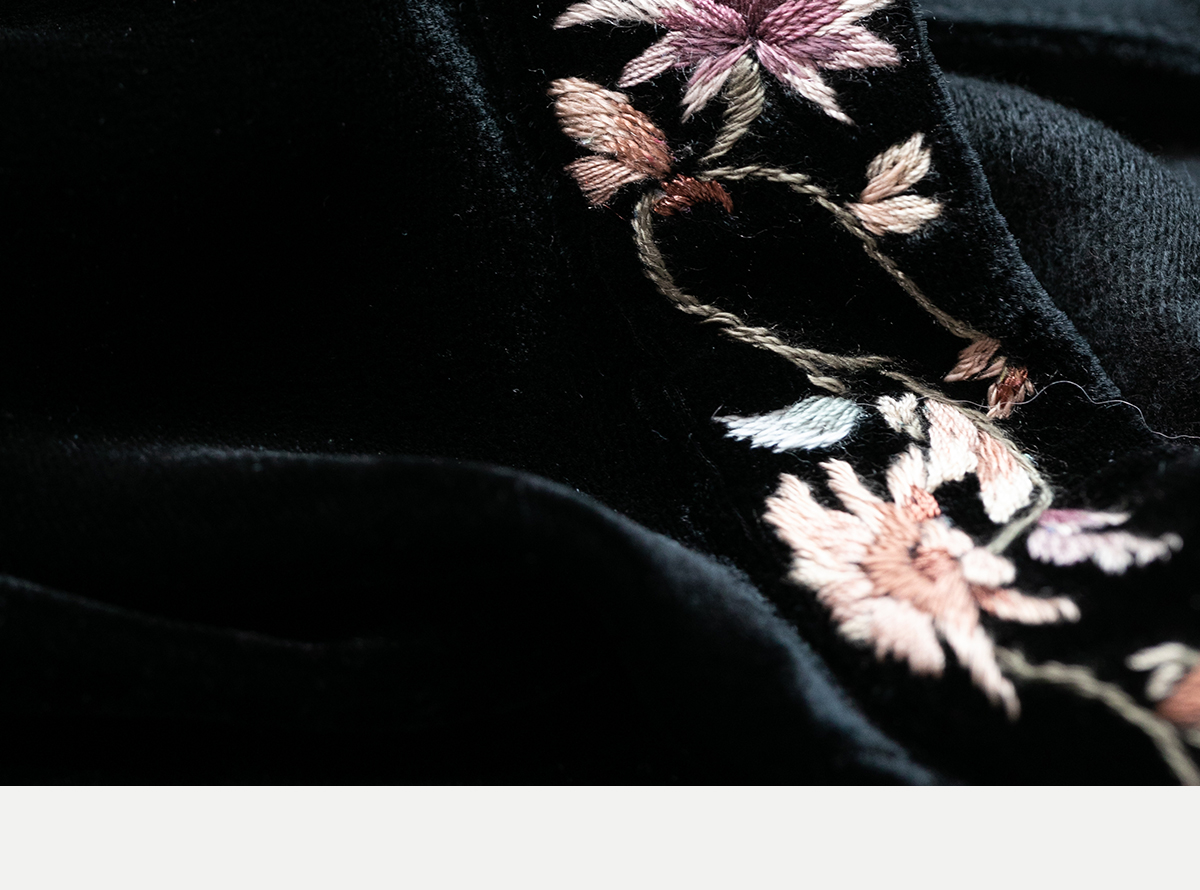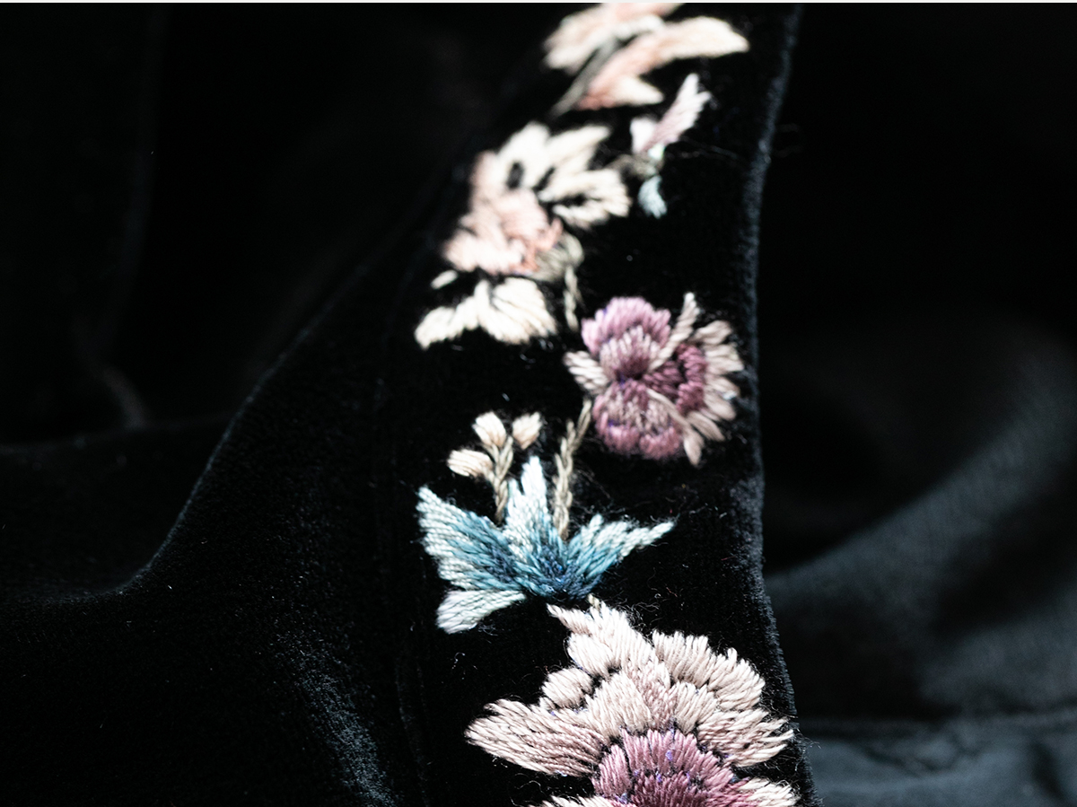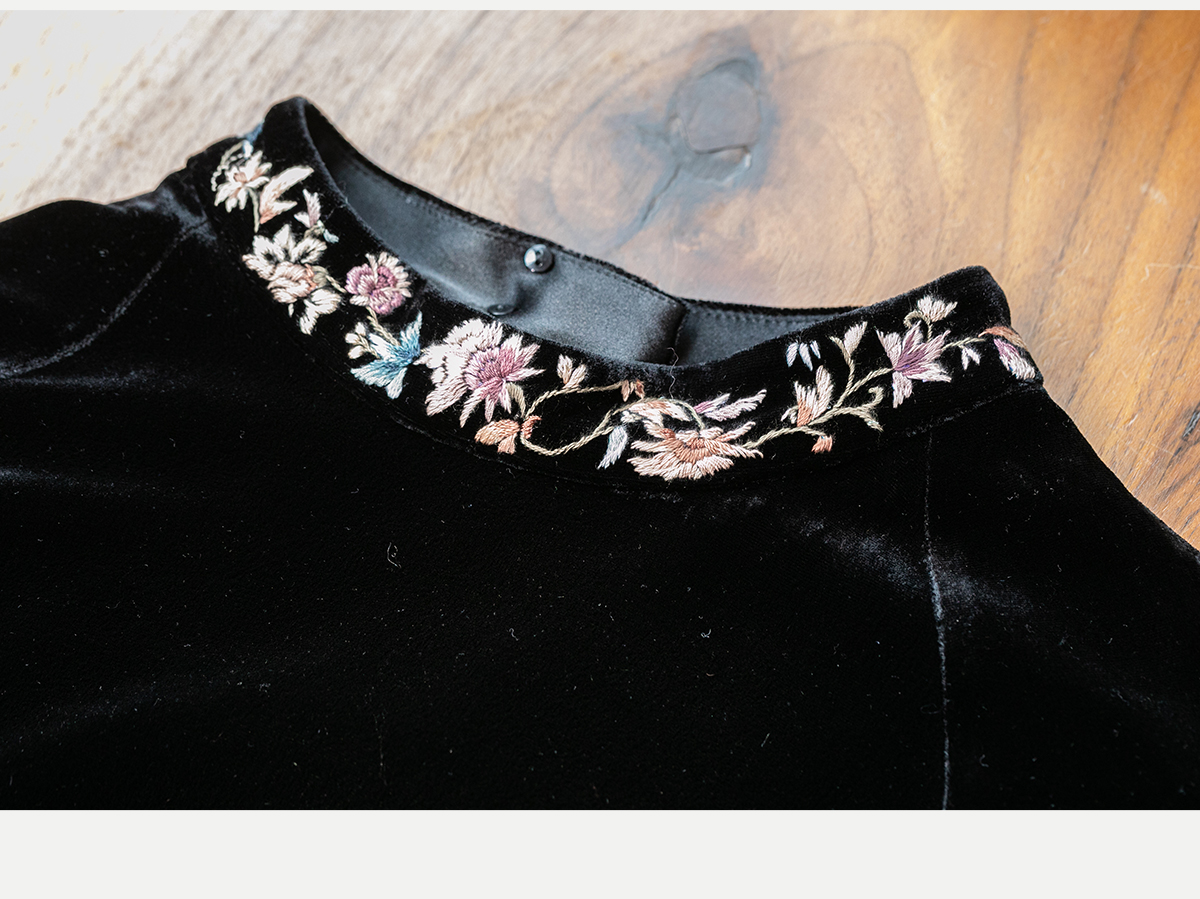牧衣游原创 丝绒手工刺绣连衣裙黑色高级感宽松复古气质长裙 迎岚
