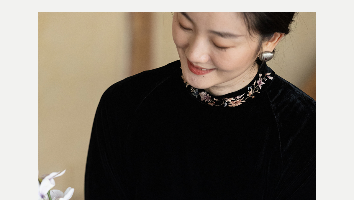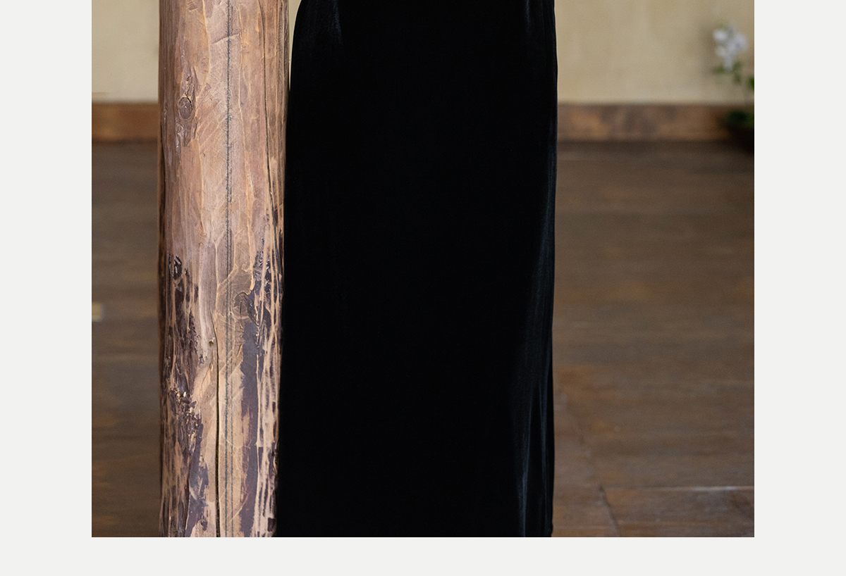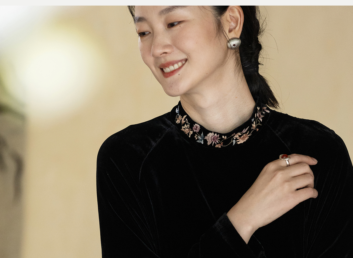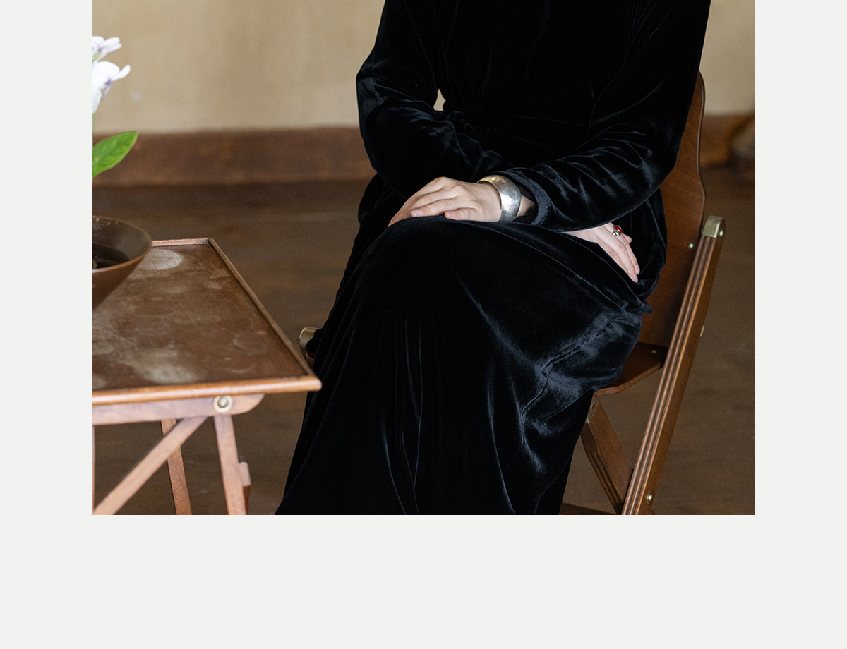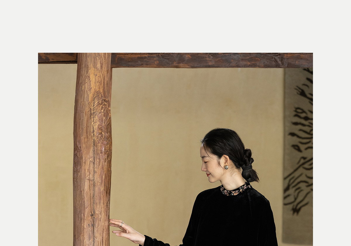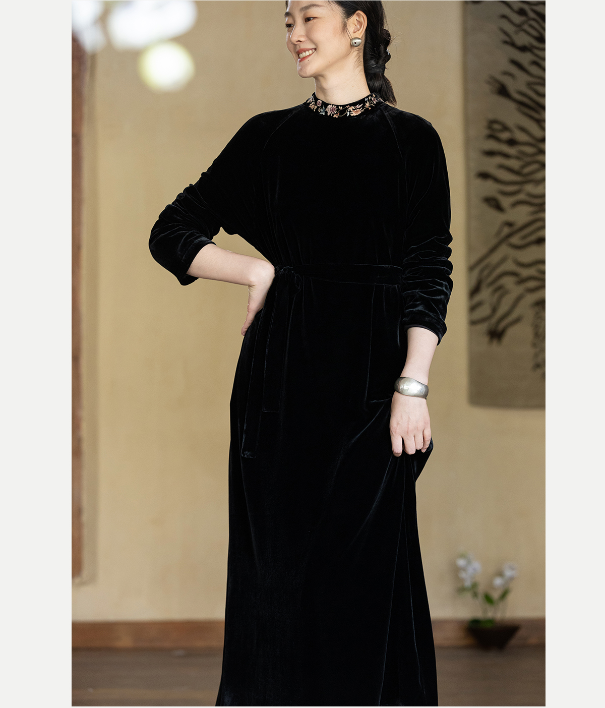 牧衣游原创 丝绒手工刺绣连衣裙黑色高级感宽松复古气质长裙 迎岚